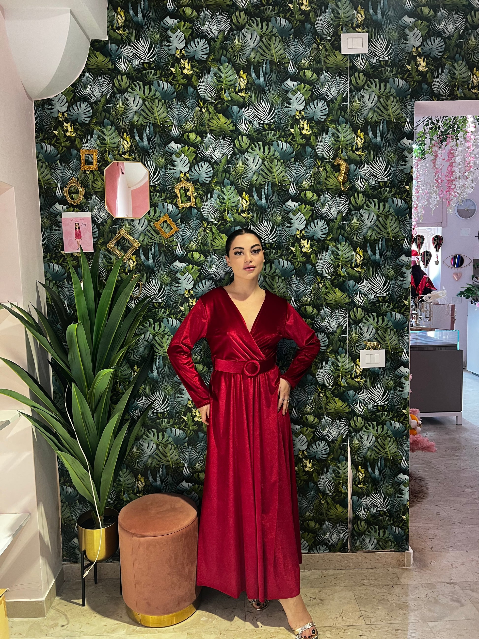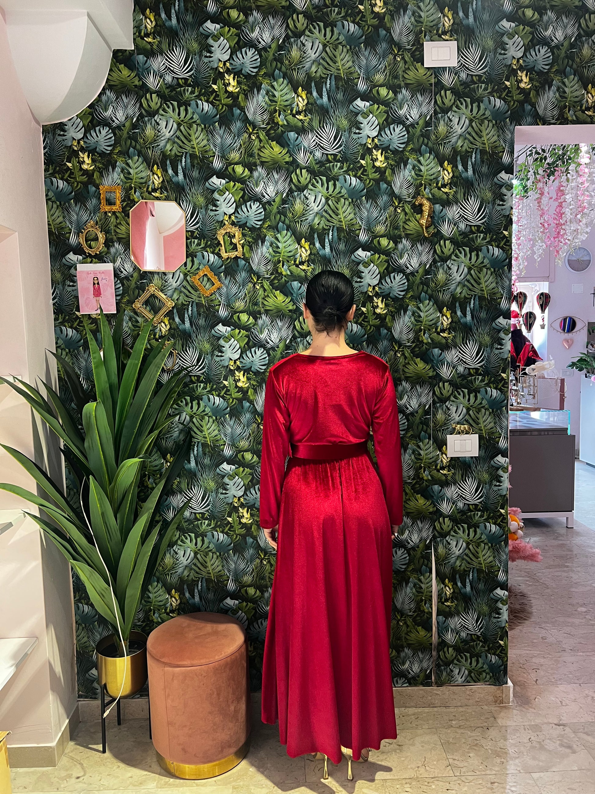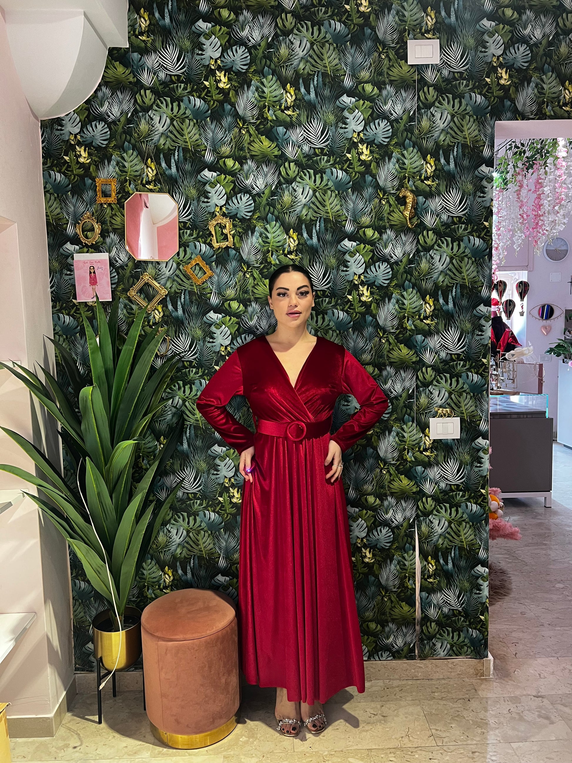 Questo bellissimo abito natalizio in velluto elasticizzato è perfetto per le festività. Oltre ad essere comodo e flessibile, il tessuto in velluto dona un tocco di eleganza e lusso al tuo look. Porta lo spirito del Natale con te ovunque tu vada con questo abito unico.
