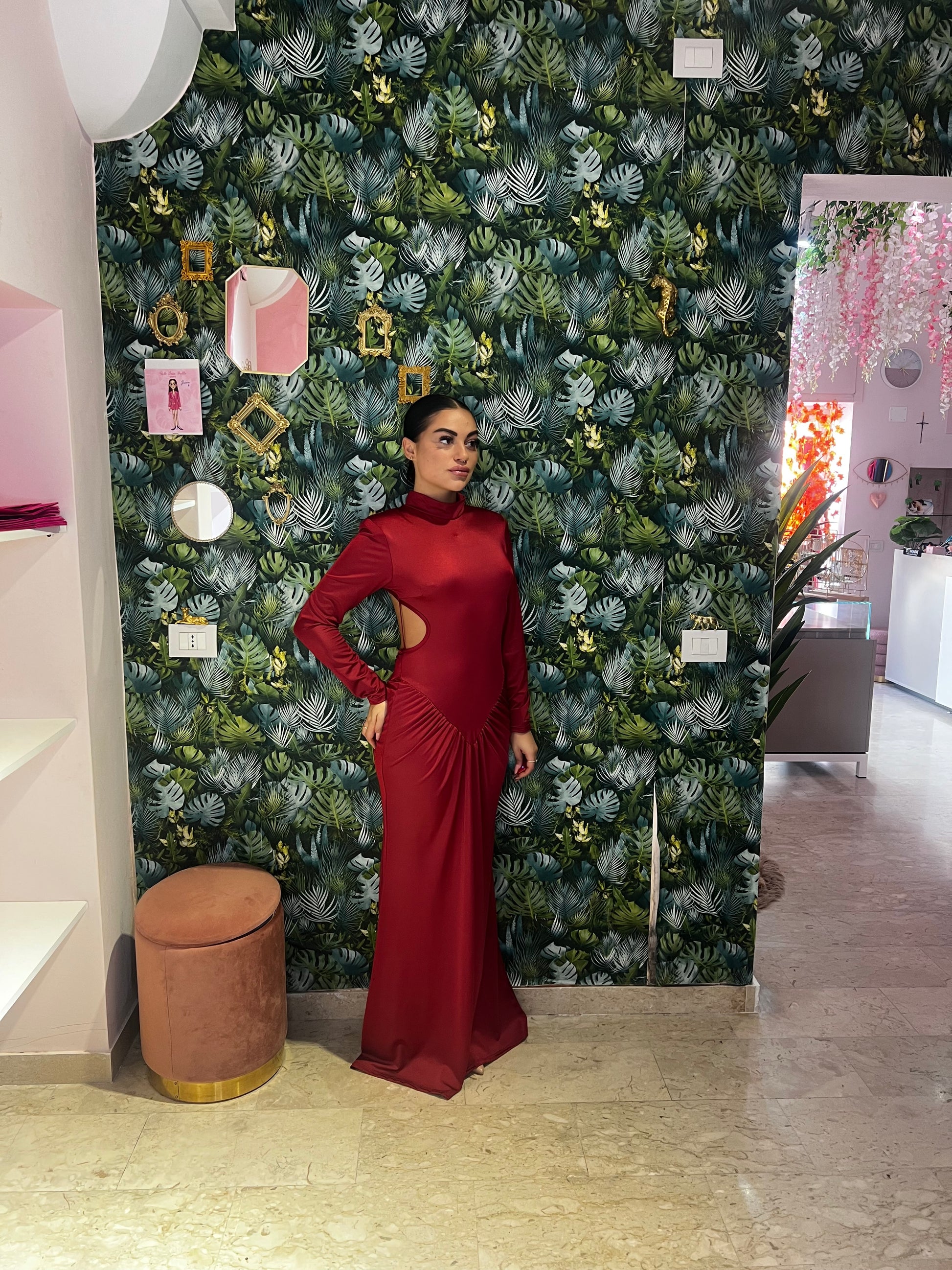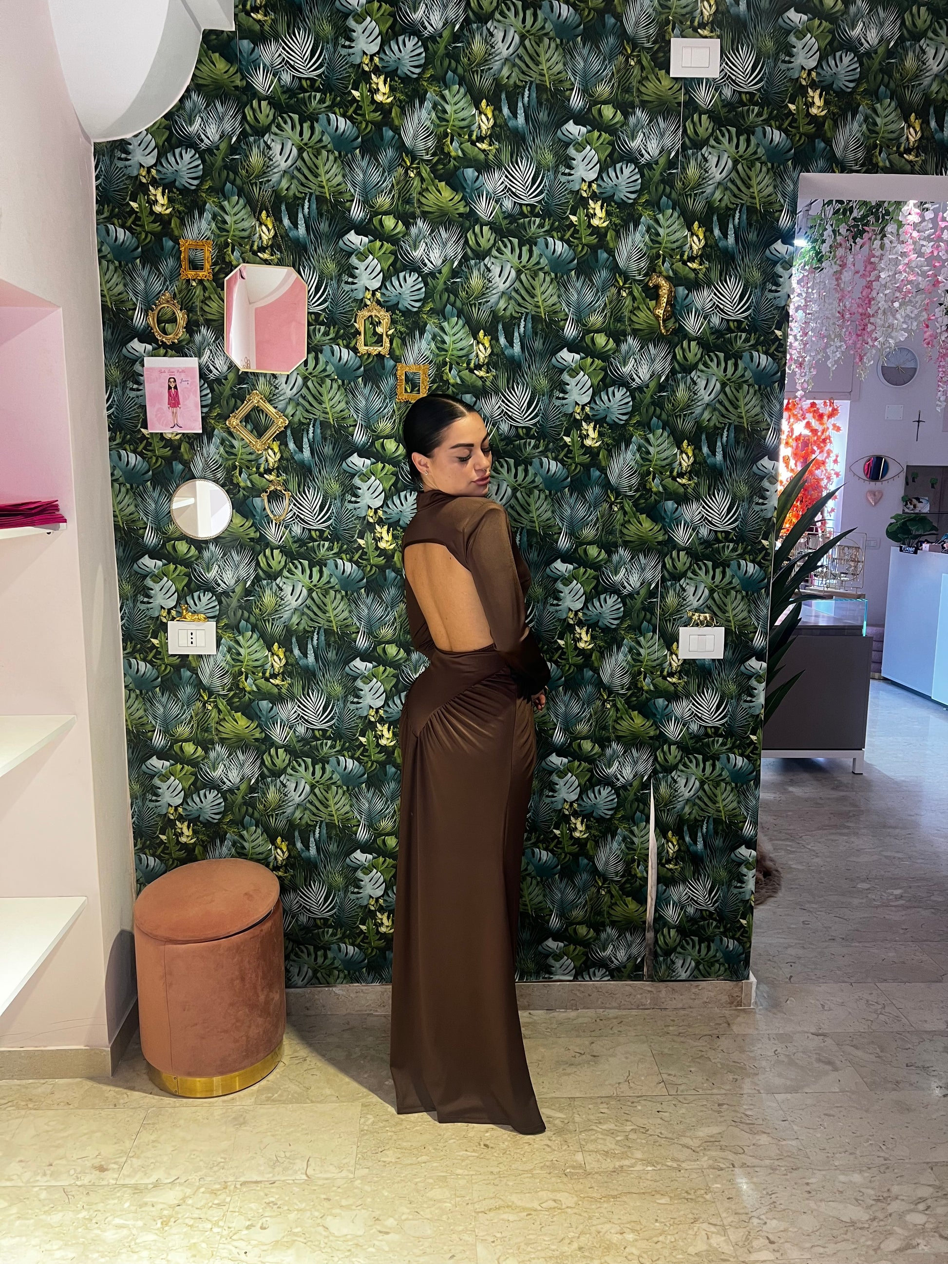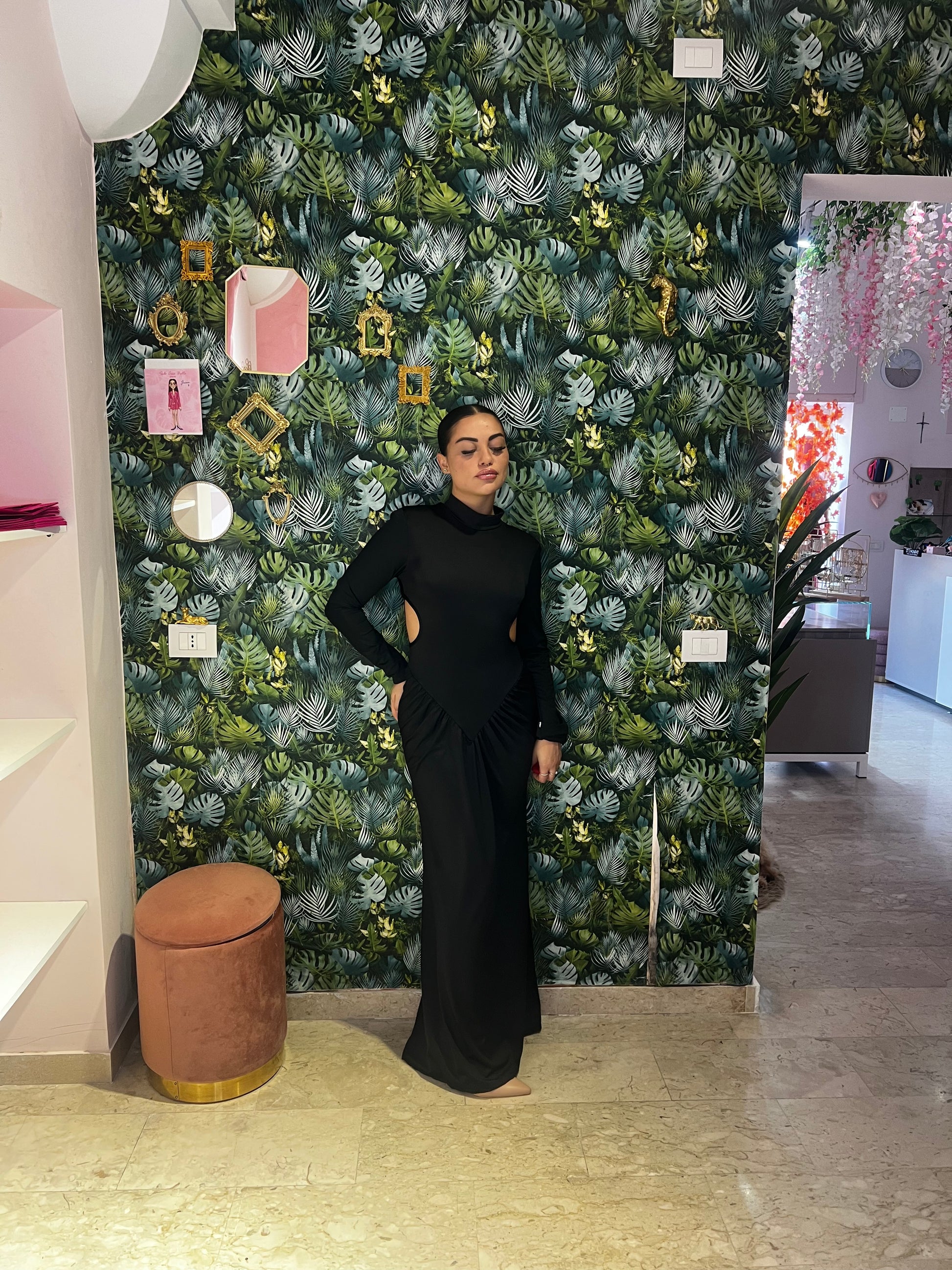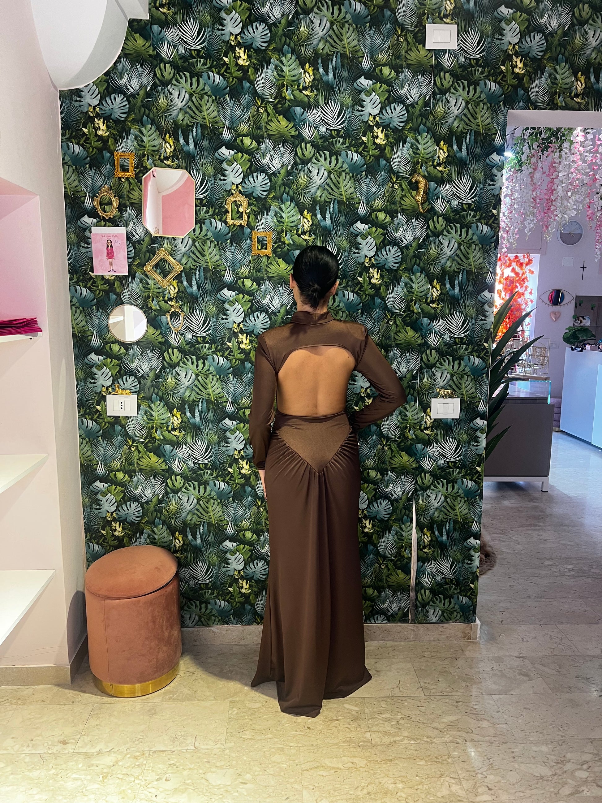 L'Abito Emma è perfetto per una cerimonia, con un design a sirena e maniche lunghe per un look elegante. Dettagli unici e una schiena scoperta lo rendono unico. Indossalo per un'occasione speciale e stupisci tutti con il tuo stile sofisticato.