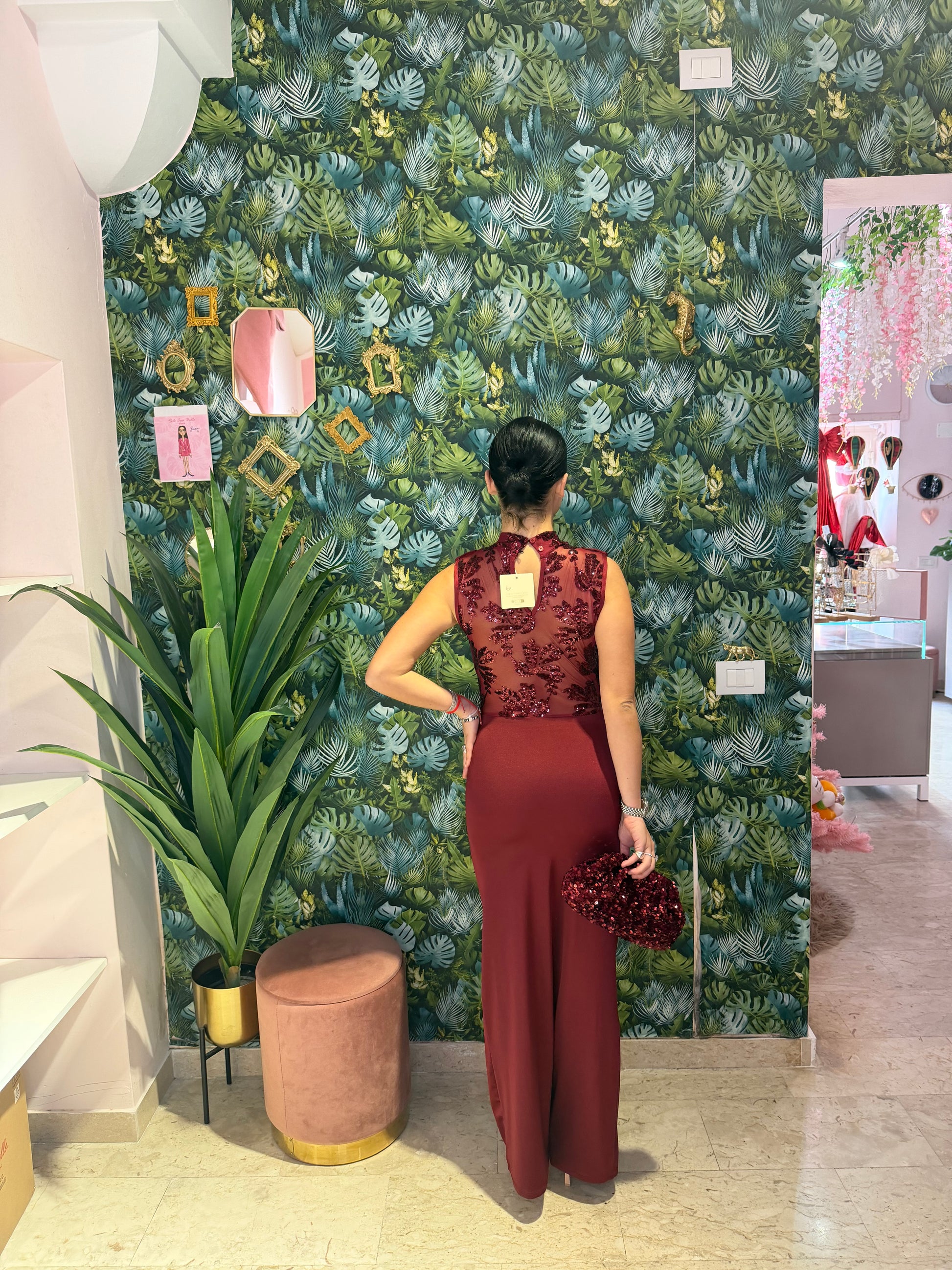 Questo abito Grace natalizio è perfetto per le festività, grazie ai dettagli trasparenti e alle pailettes che donano un tocco di eleganza. Il tuo look sarà e sofisticato, attirando tutte le attenzioni.