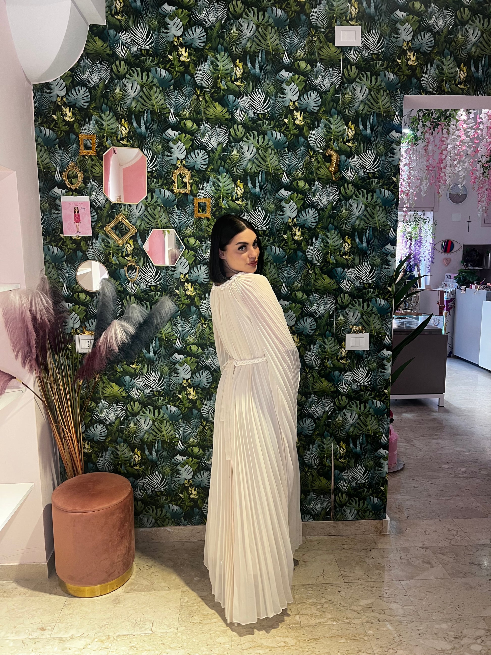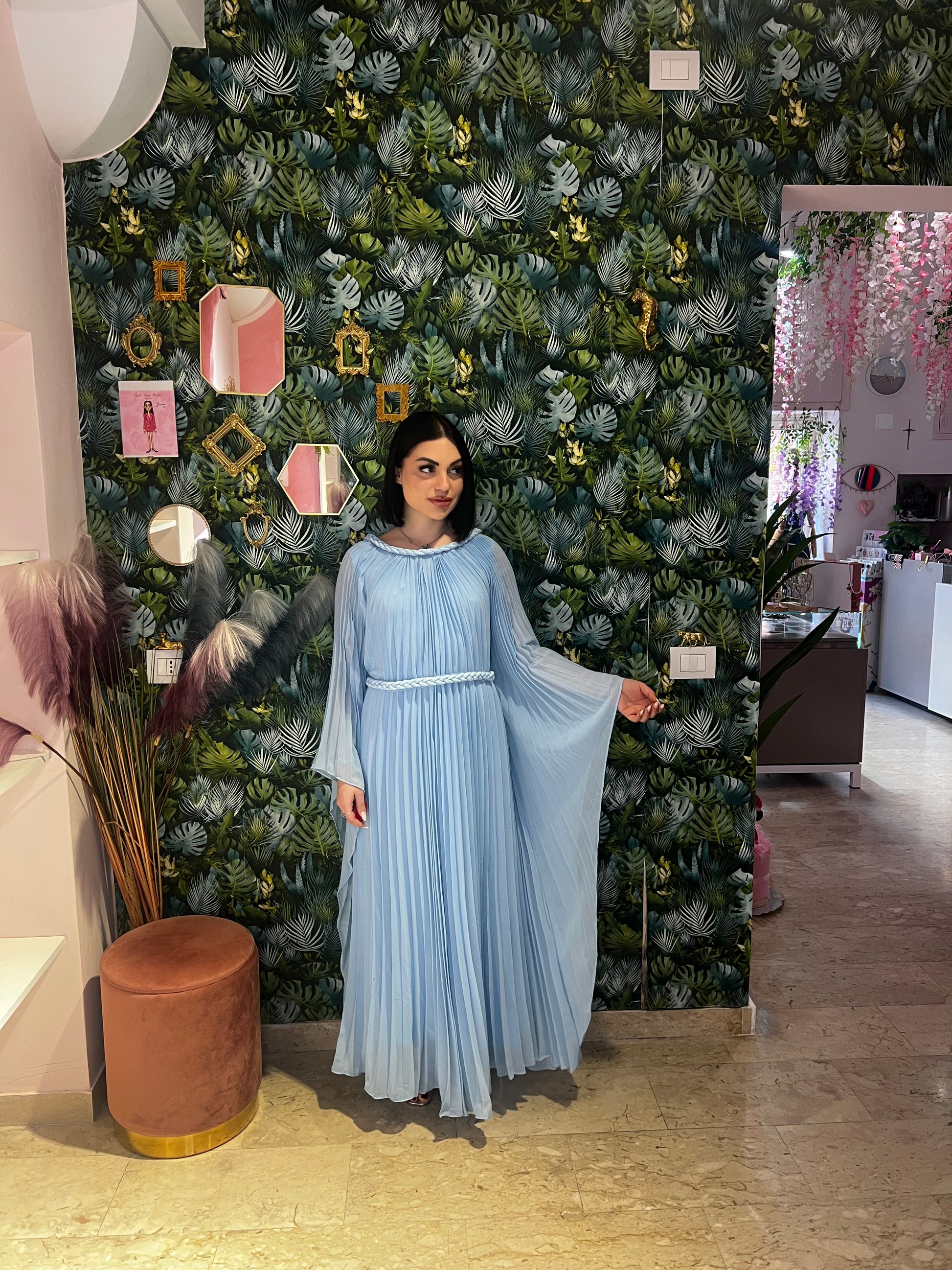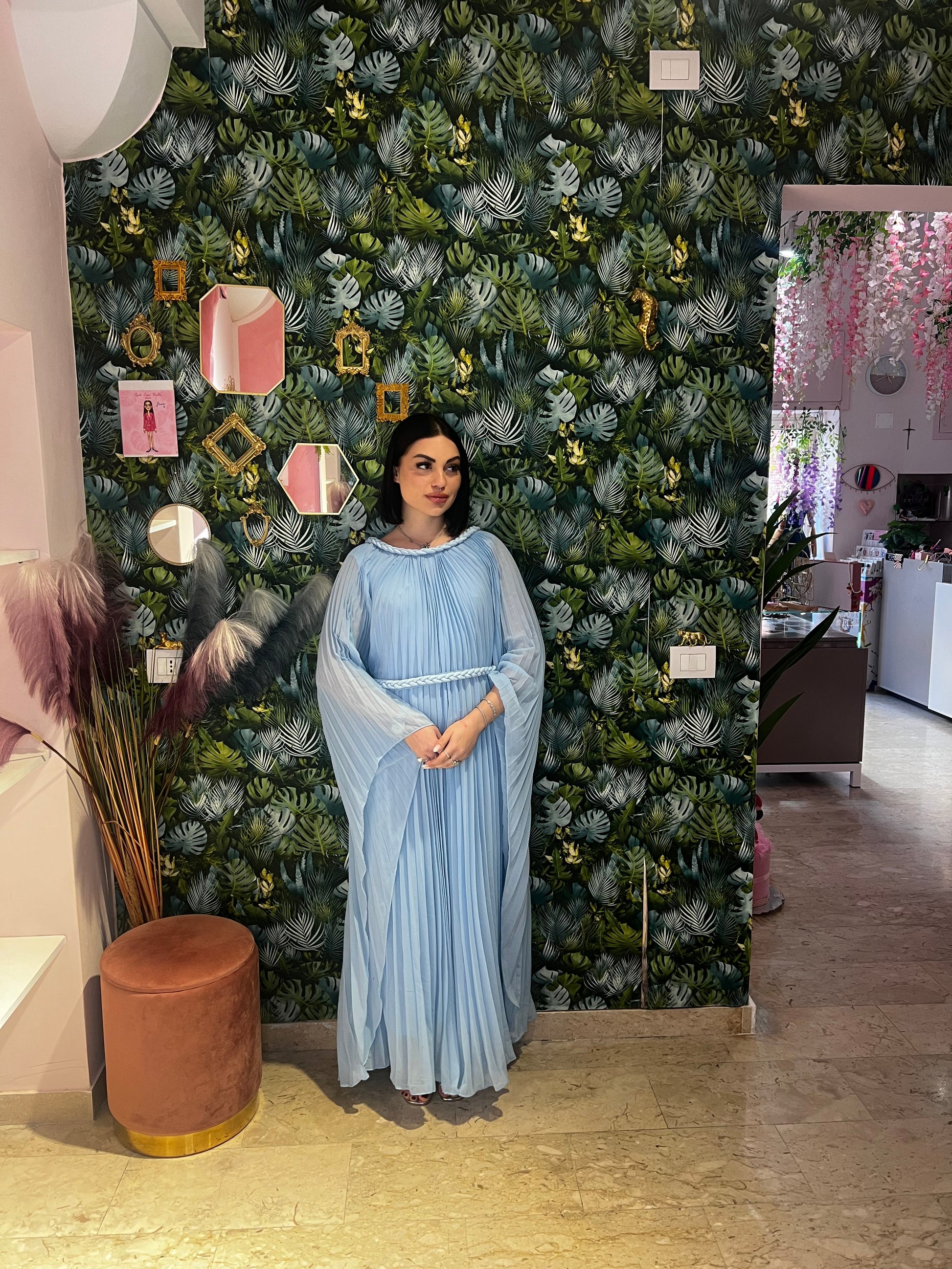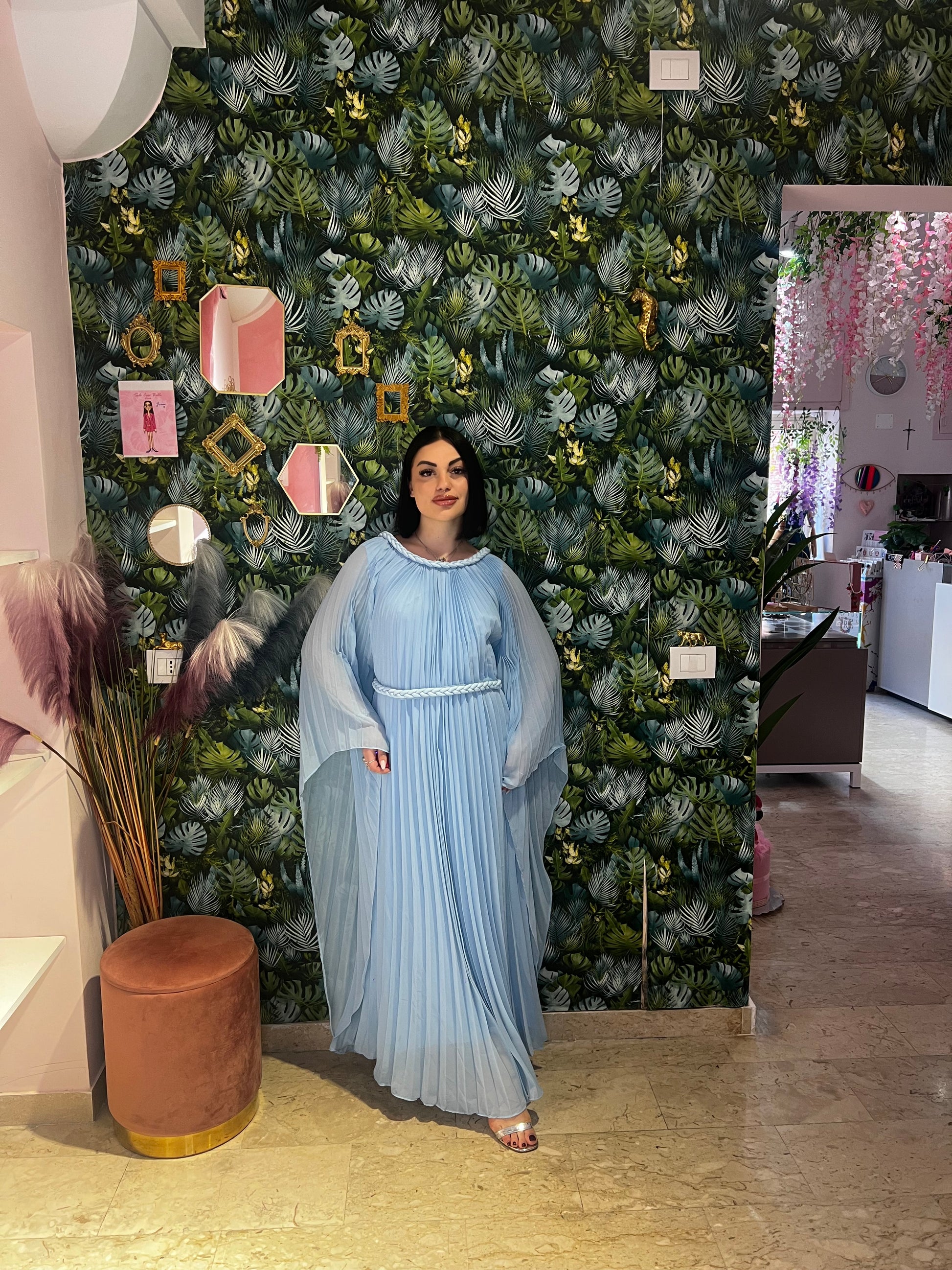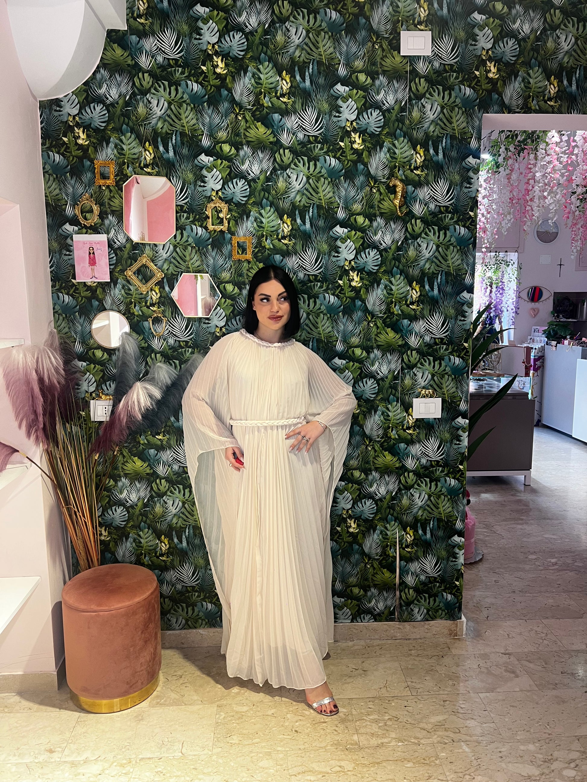 Questo abito Jasmine è elegante e chic, grazie alle sue maniche a pipistrello e al suo particolare design. Perfetto per occasioni speciali come cerimonie e feste, ti farà sentire elegante e alla moda.