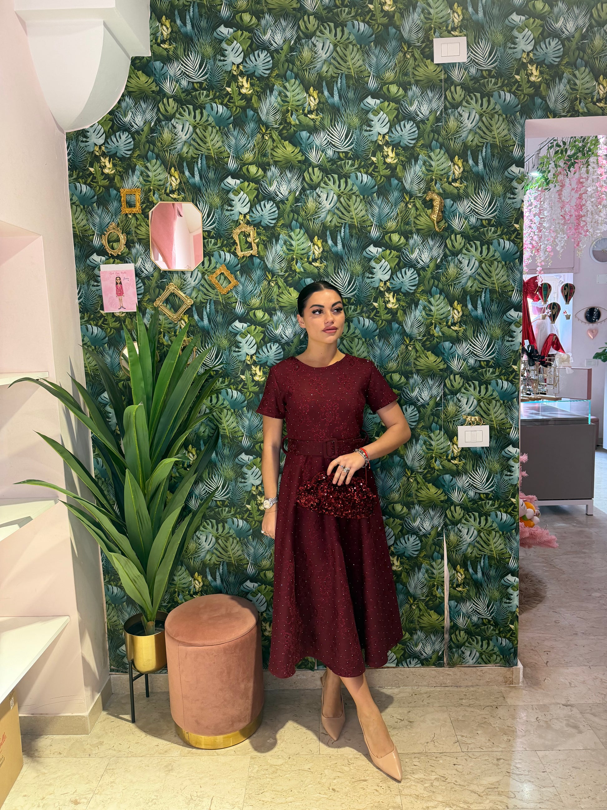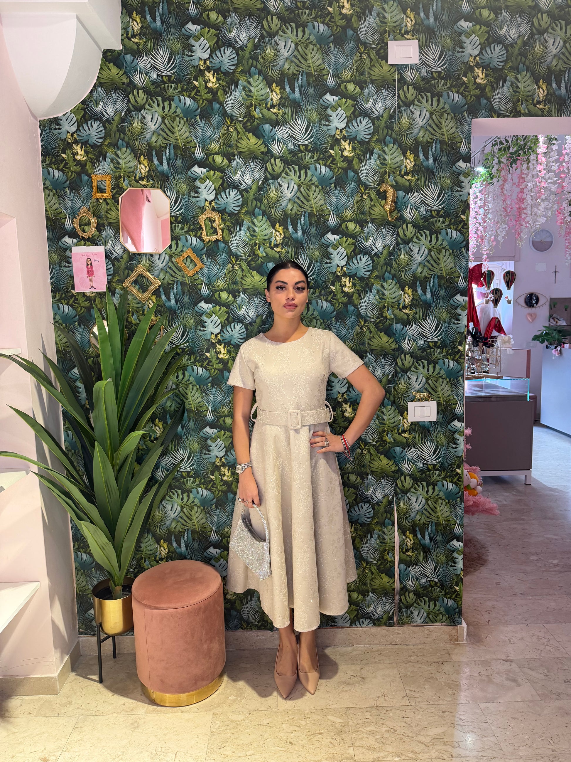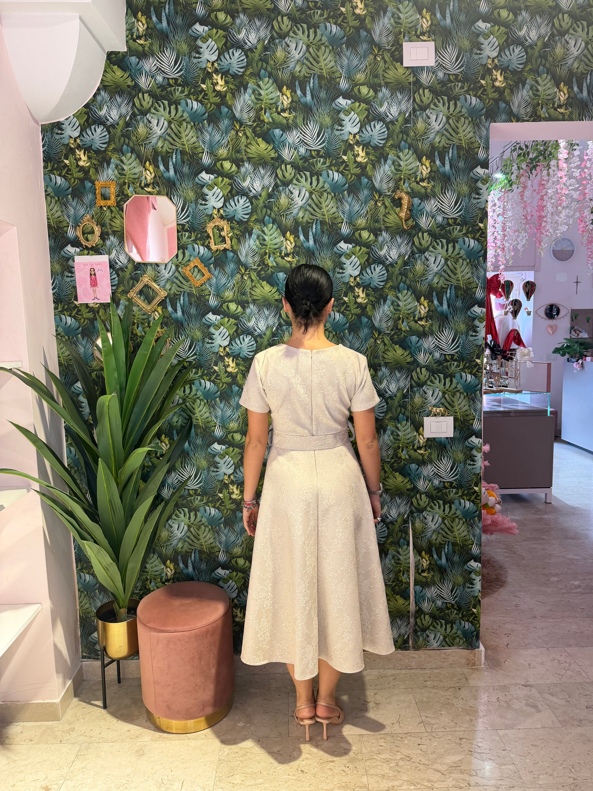 Abito romantico in pizzo, arricchito dalla cintura abbinata. Comodo e leggero, adatto per occasioni speciali o per il quotidiano. Il pizzo dona un tocco di eleganza e la cintura sottolinea la vita. Facile da abbinare, perfetto per chi vuole essere sempre al passo con la moda.