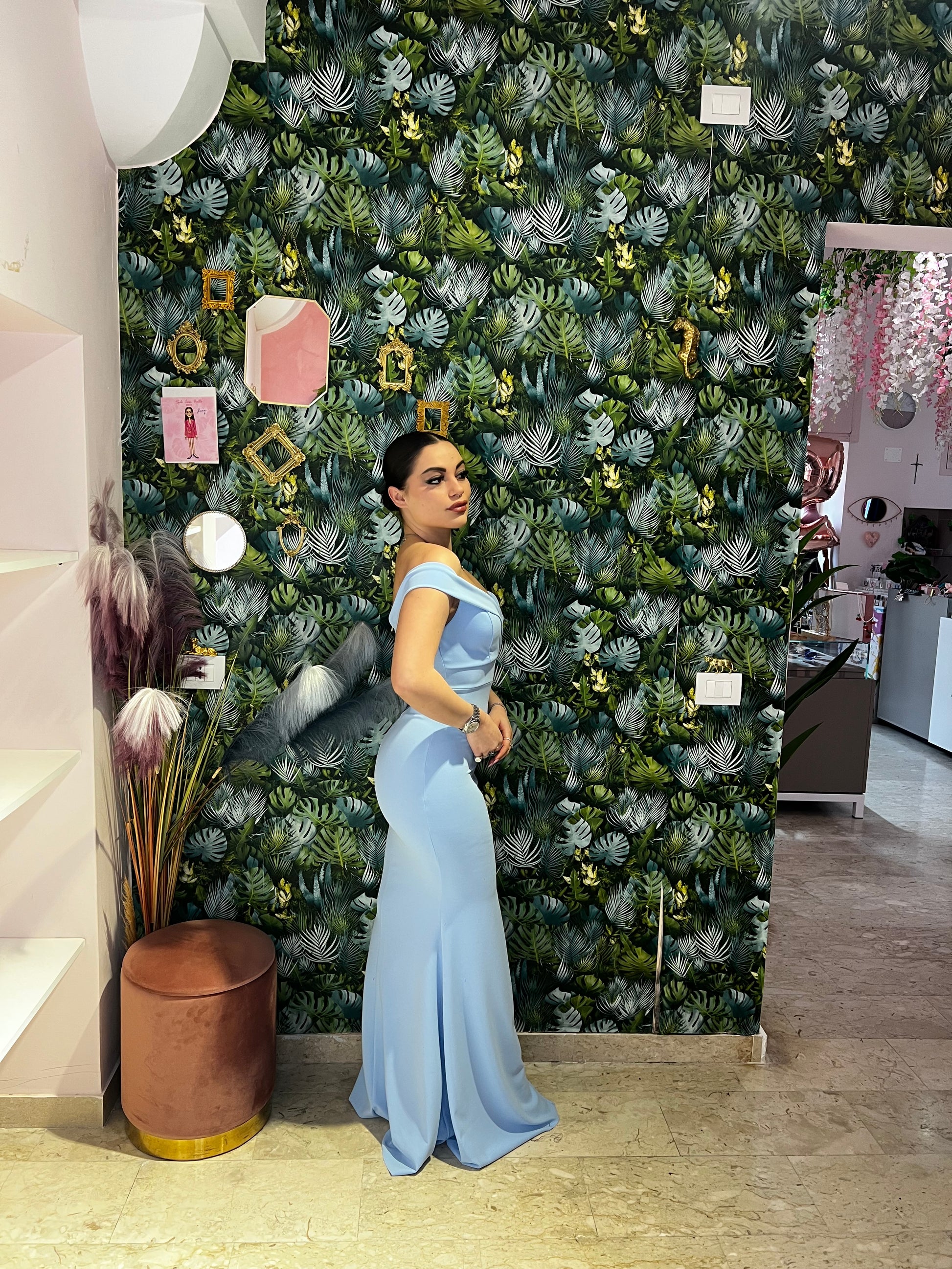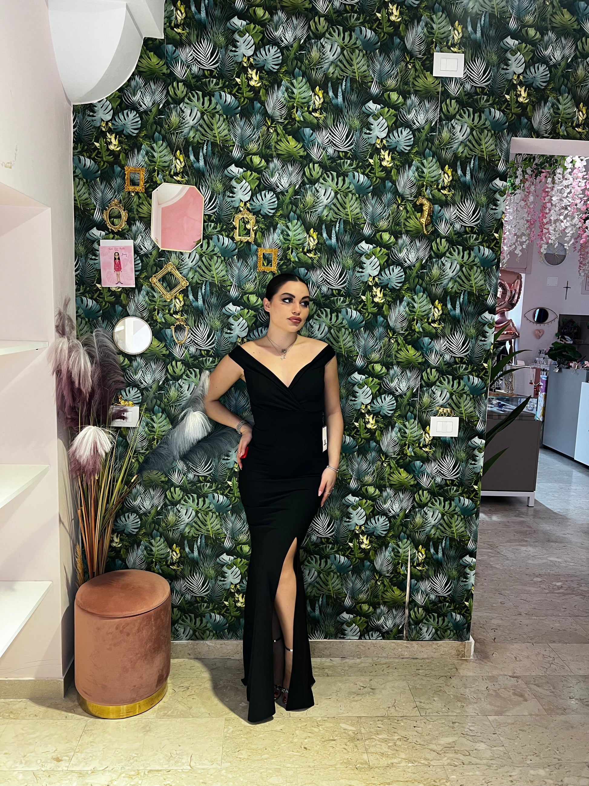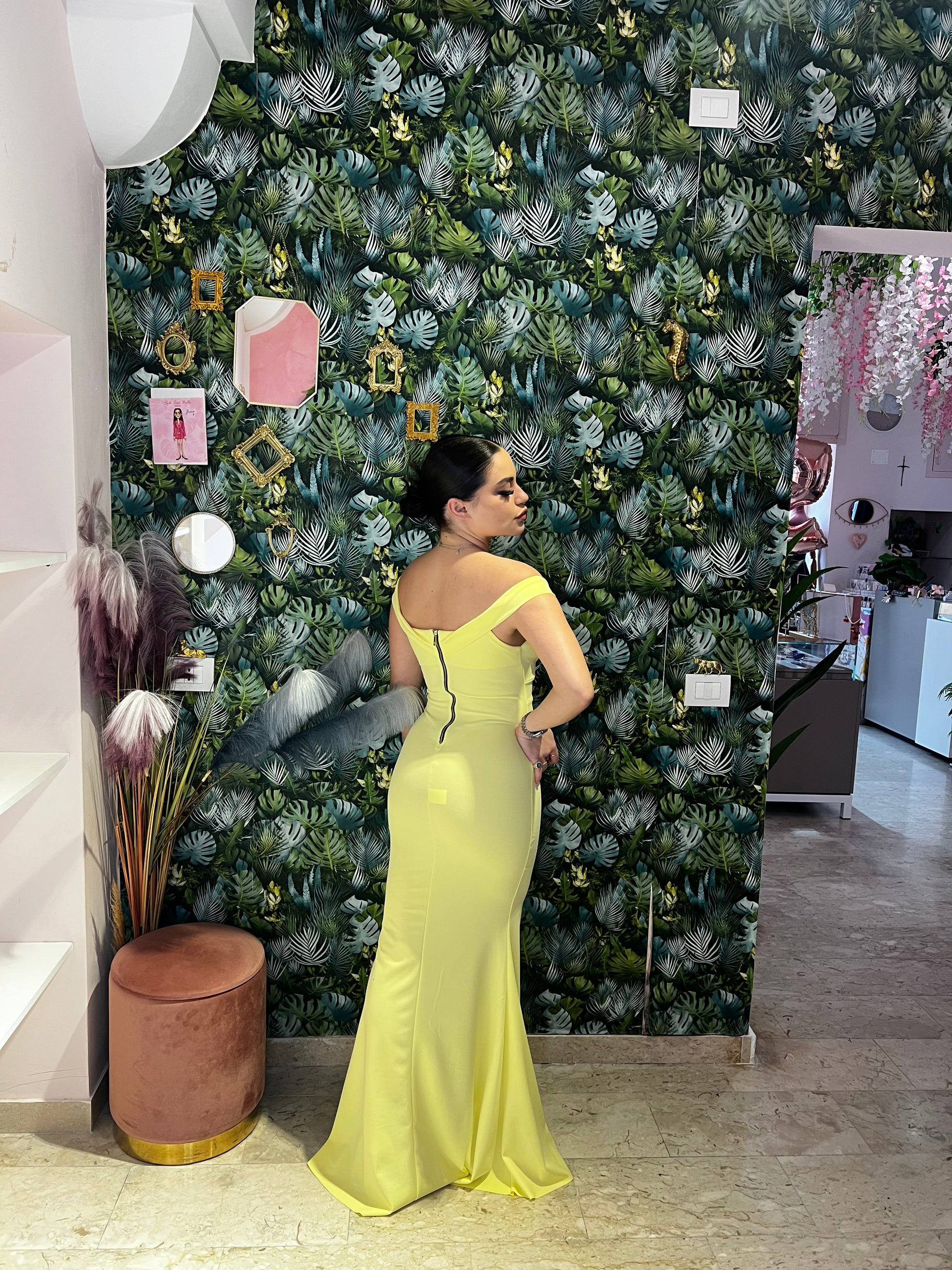 Questo abito scollo a barca, con spacco a sirena, è perfetto per esaltare le tue forme. Realizzato con cura per garantire una vestibilità impeccabile, è l'abito ideale per ogni occasione. L'eleganza del design a sirena e il taglio a barca ti faranno sentire sicura e affascinante.