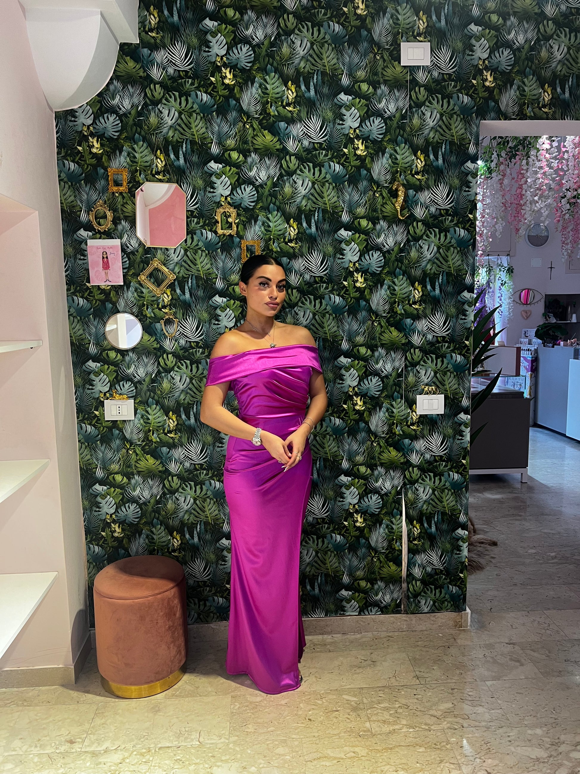 Un abito da cerimonia elegante e raffinato, il nostro Abito Esmeralda è perfetto per ogni occasione speciale. Con una linea stretta che mette in risalto la figura e l'effetto raso, questo abito garantirà un look elegante e sofisticato. Il suo scollo a barca aggiunge un tocco di fascino e femminilità. Non passerai inosservata con questo splendido abito.