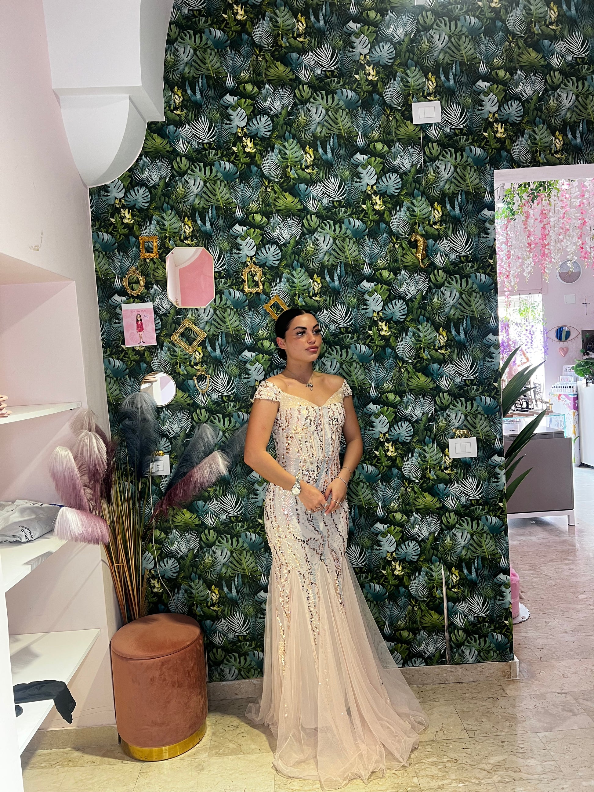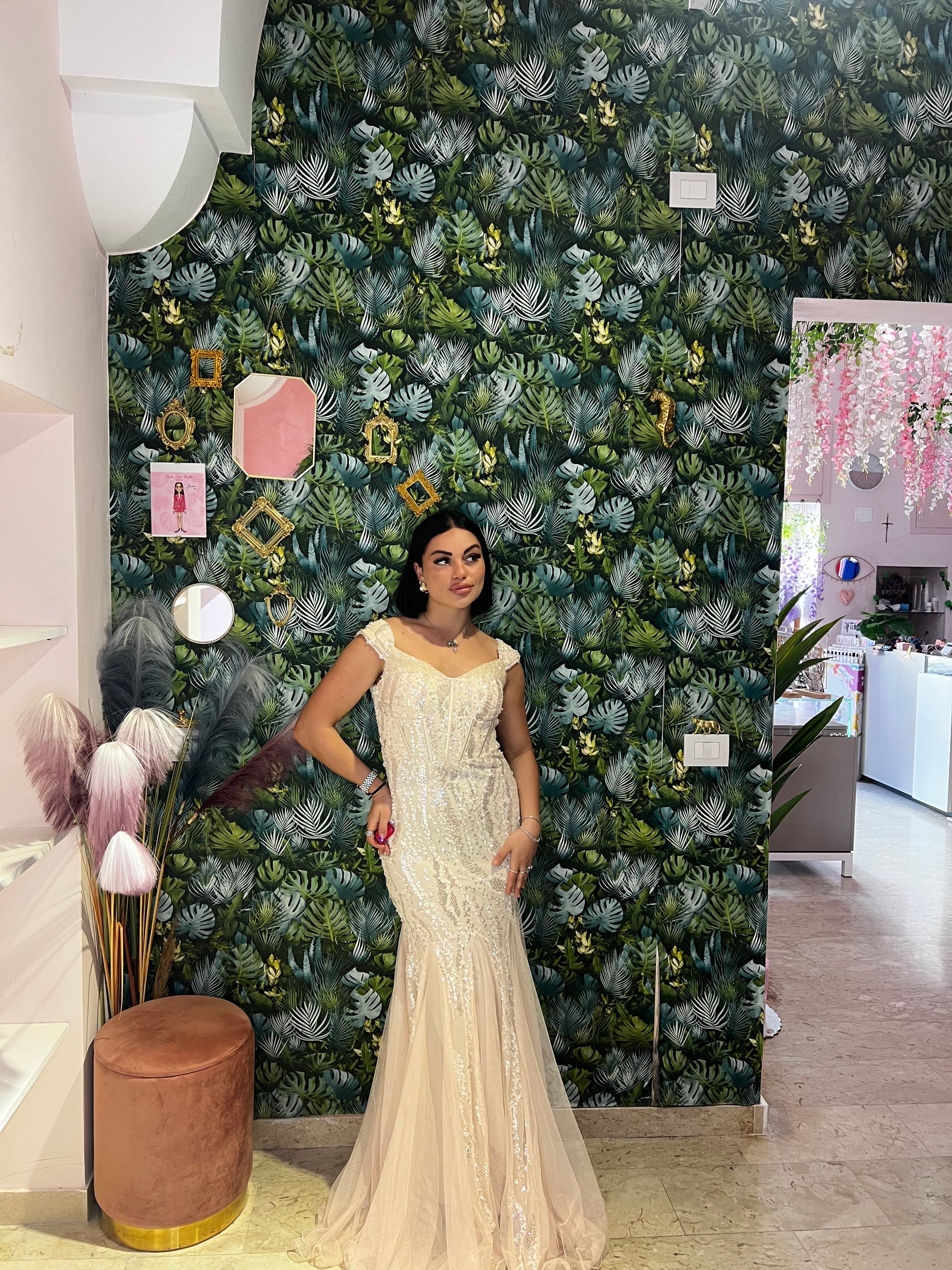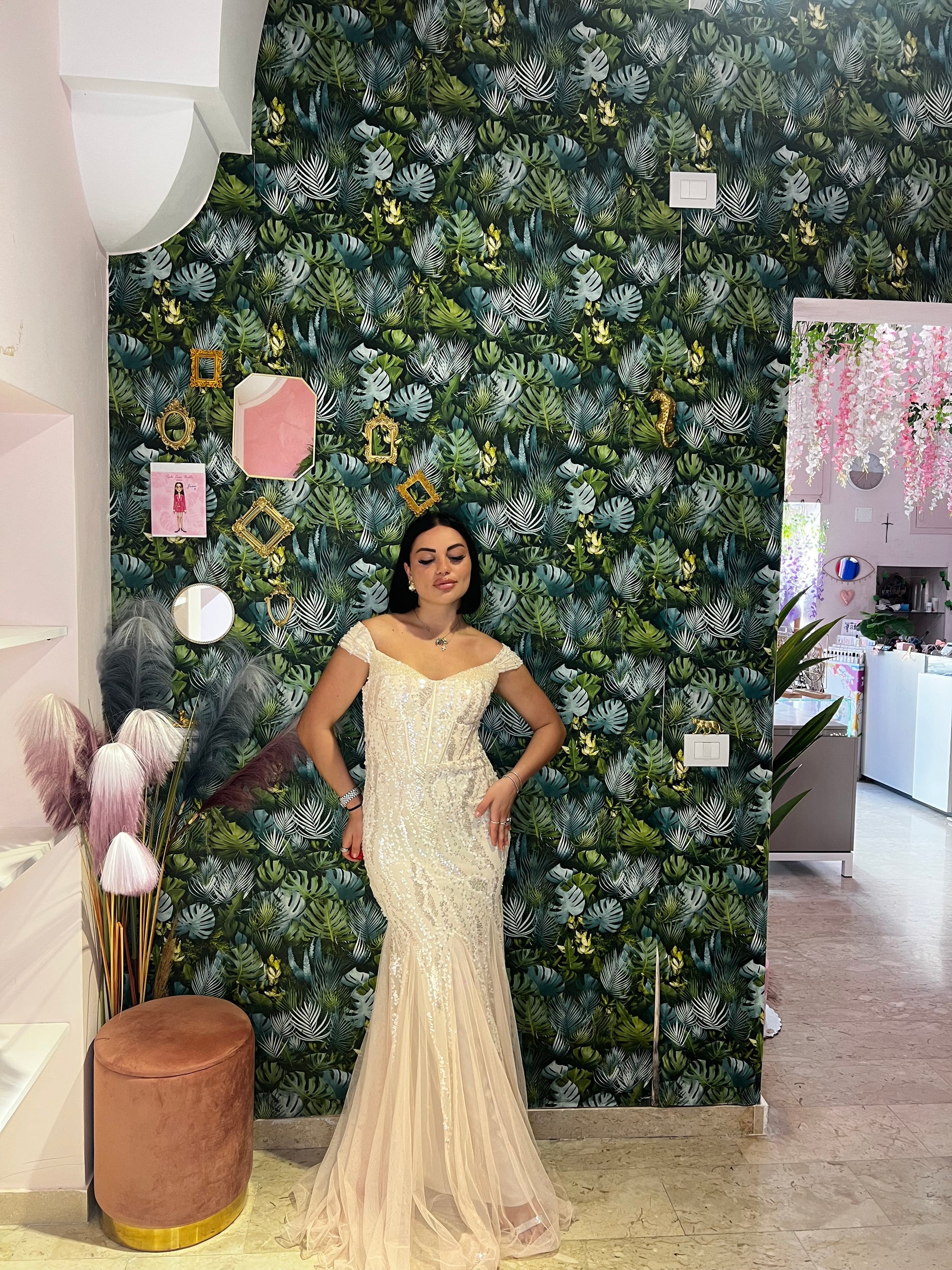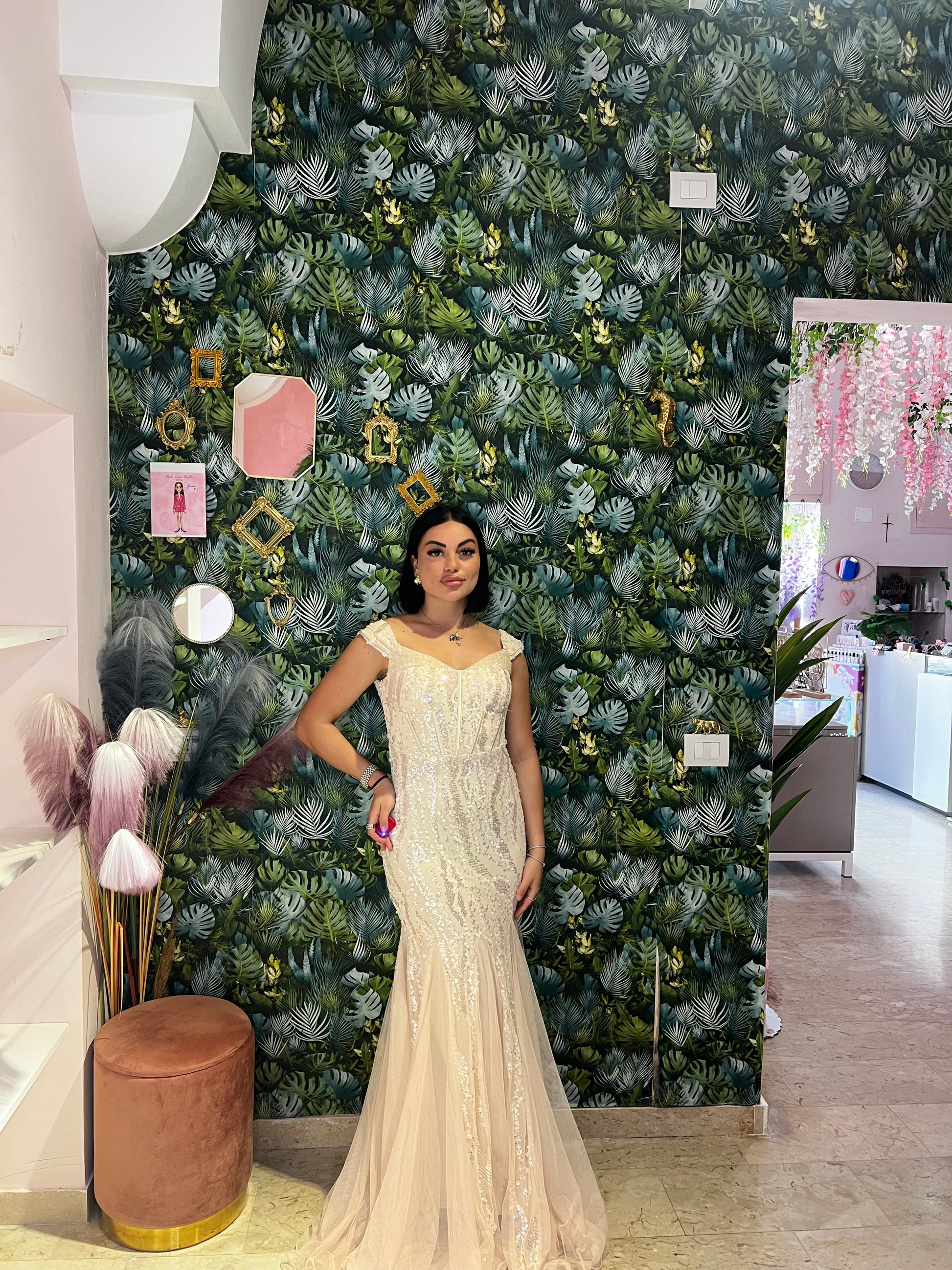 L'abito Flaminia è un sogno diventato realtà per qualsiasi cerimonia. Elegante con paillettes e pietre luccicanti, la sua gonna in tulle e l'effetto sirena ti faranno sentire bellissima. Il tuo look da principessa è garantito al 100%.