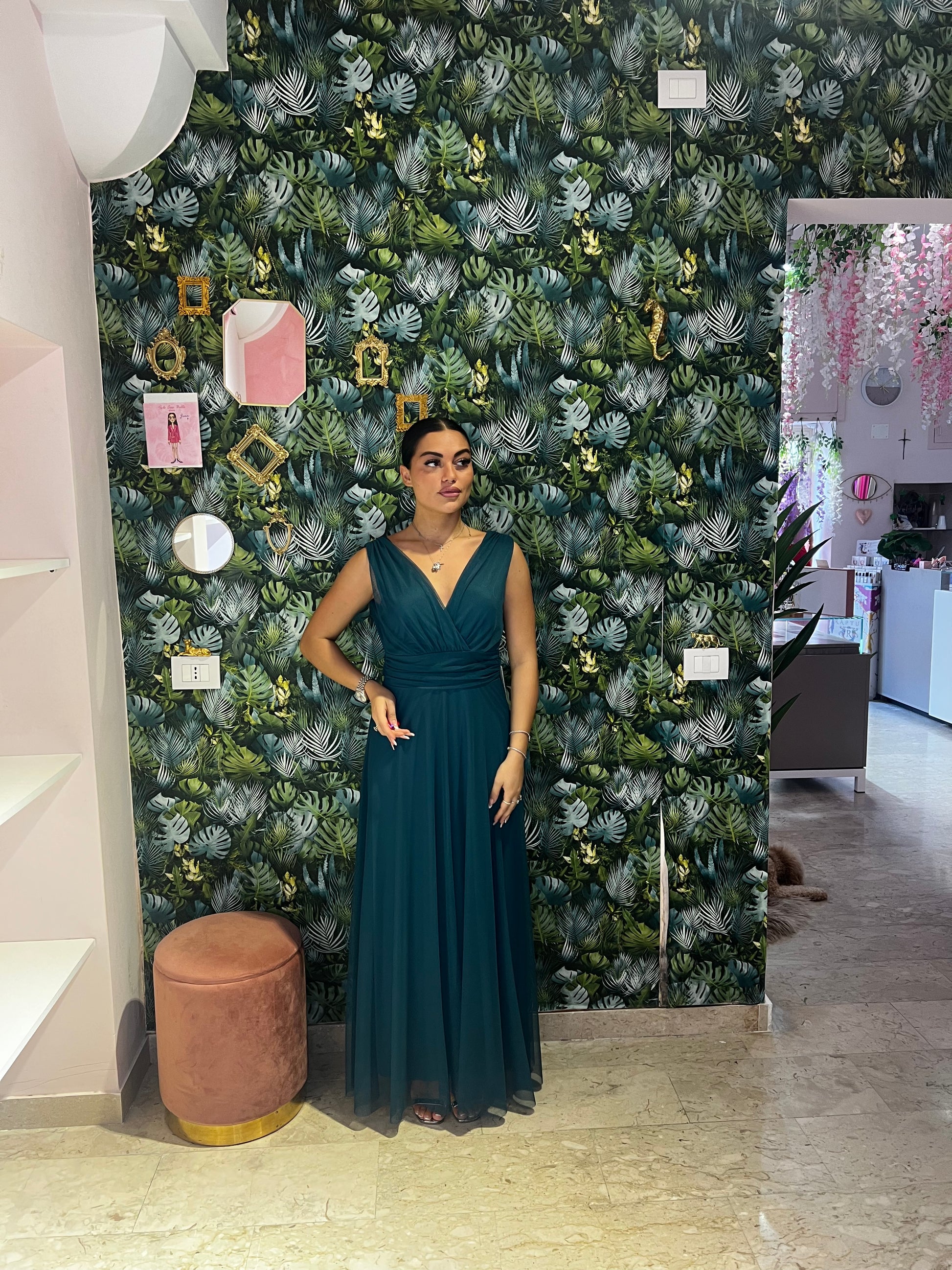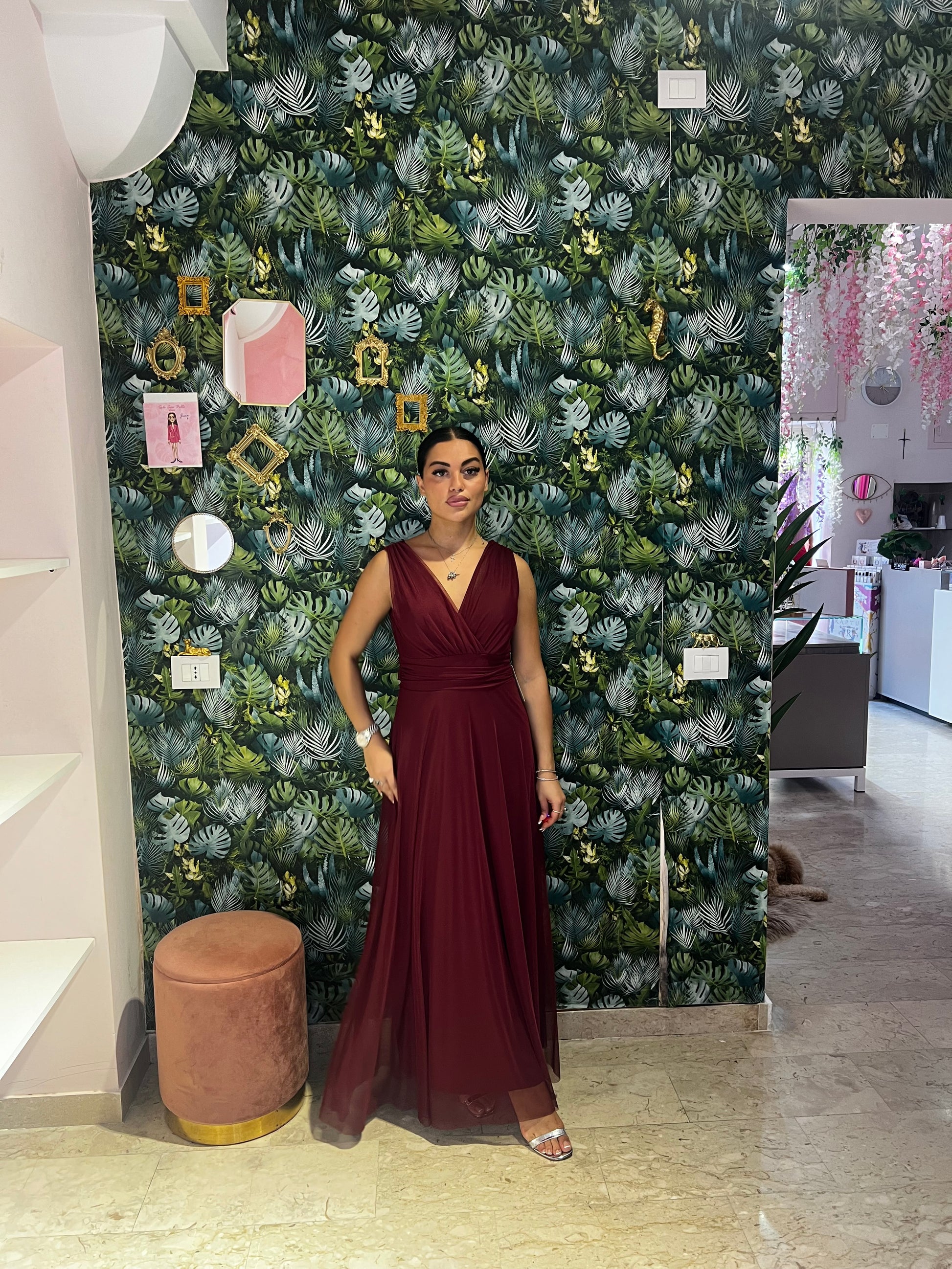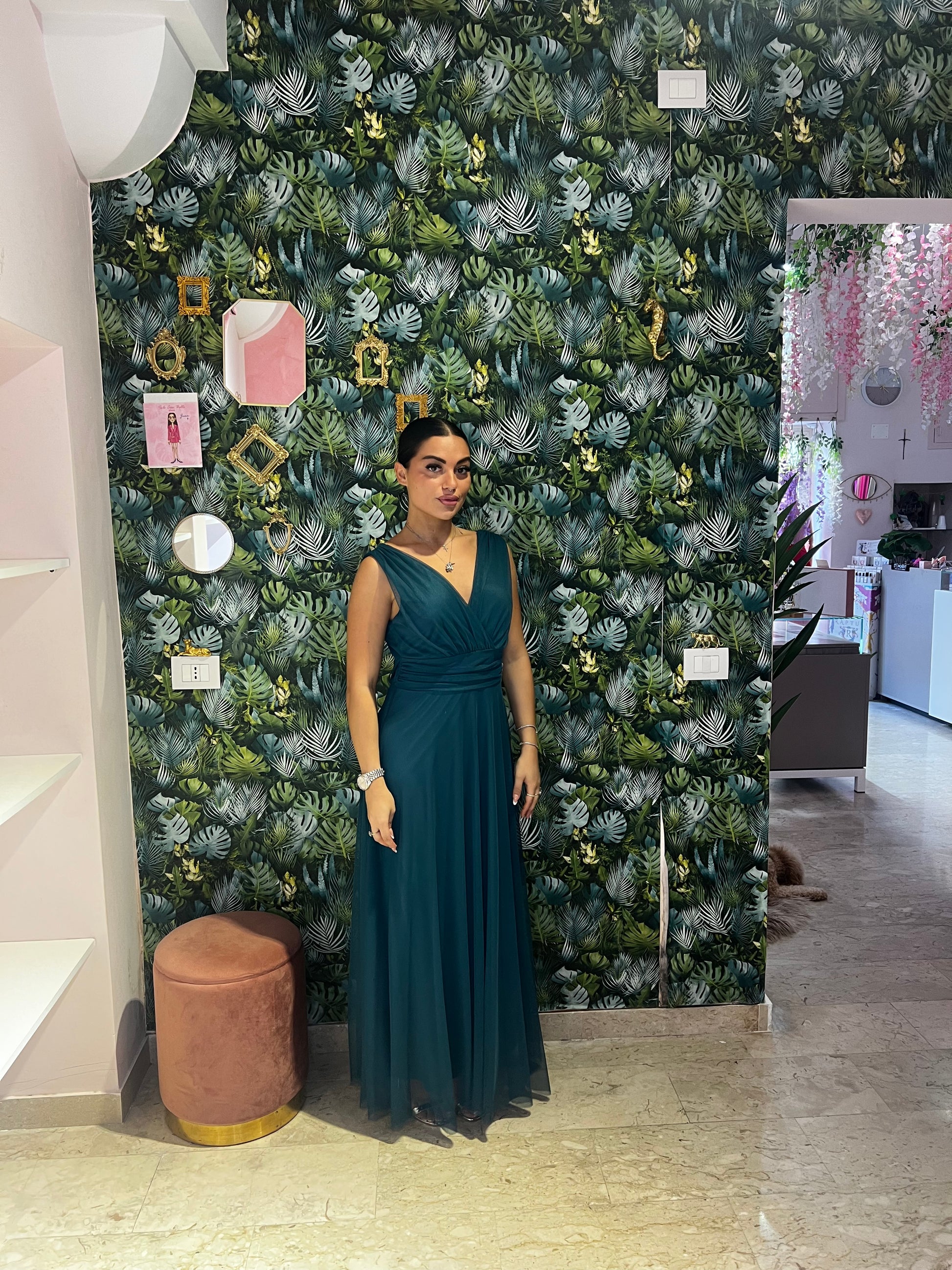 Un abito elegante, perfetto per slanciare la figura. La modella alta 1.65 indossa questo abito con tacco 10 cm che dona un'eleganza sofisticata. Scegli adesso Abito Jennifer per un look impeccabile.