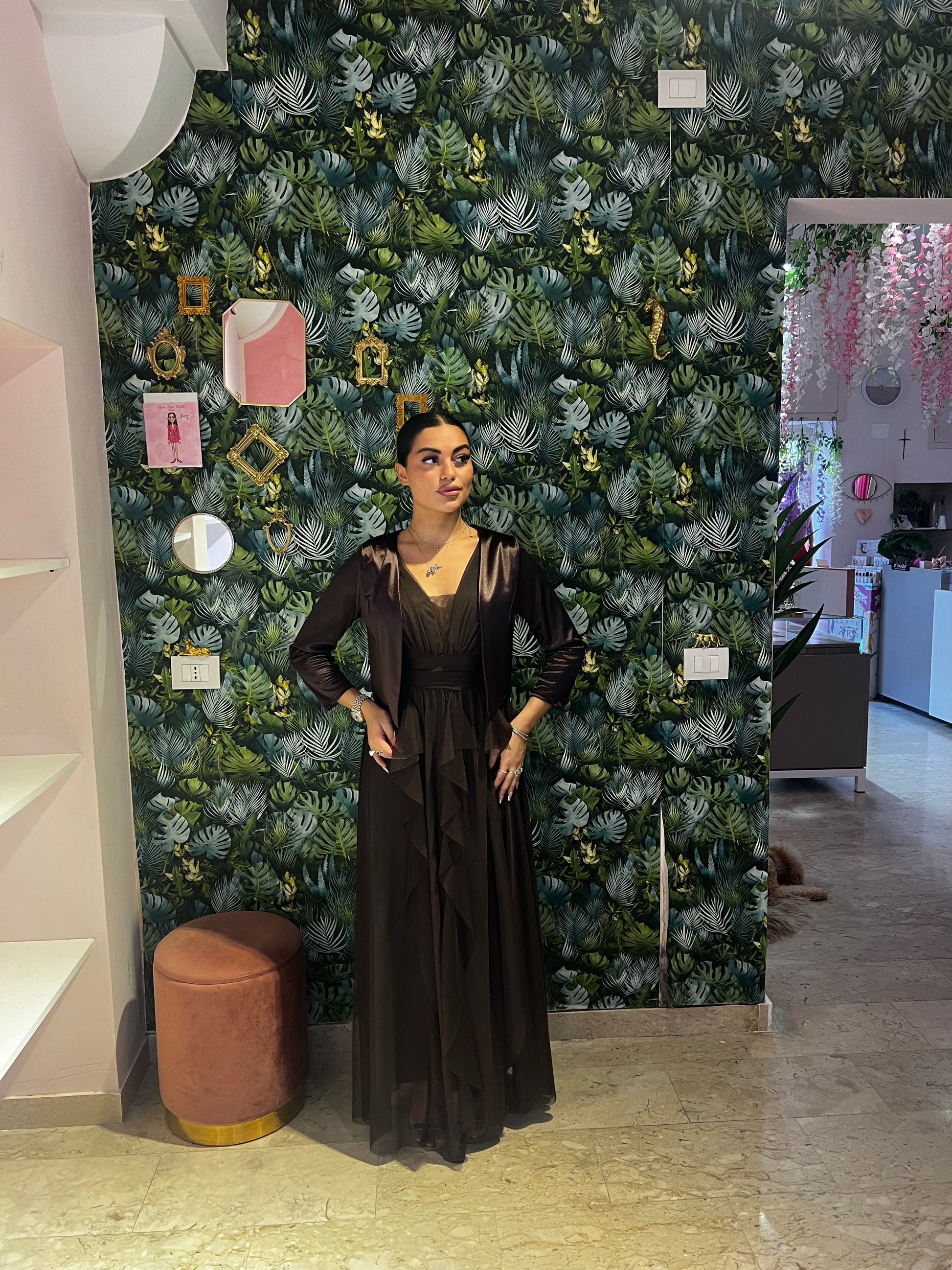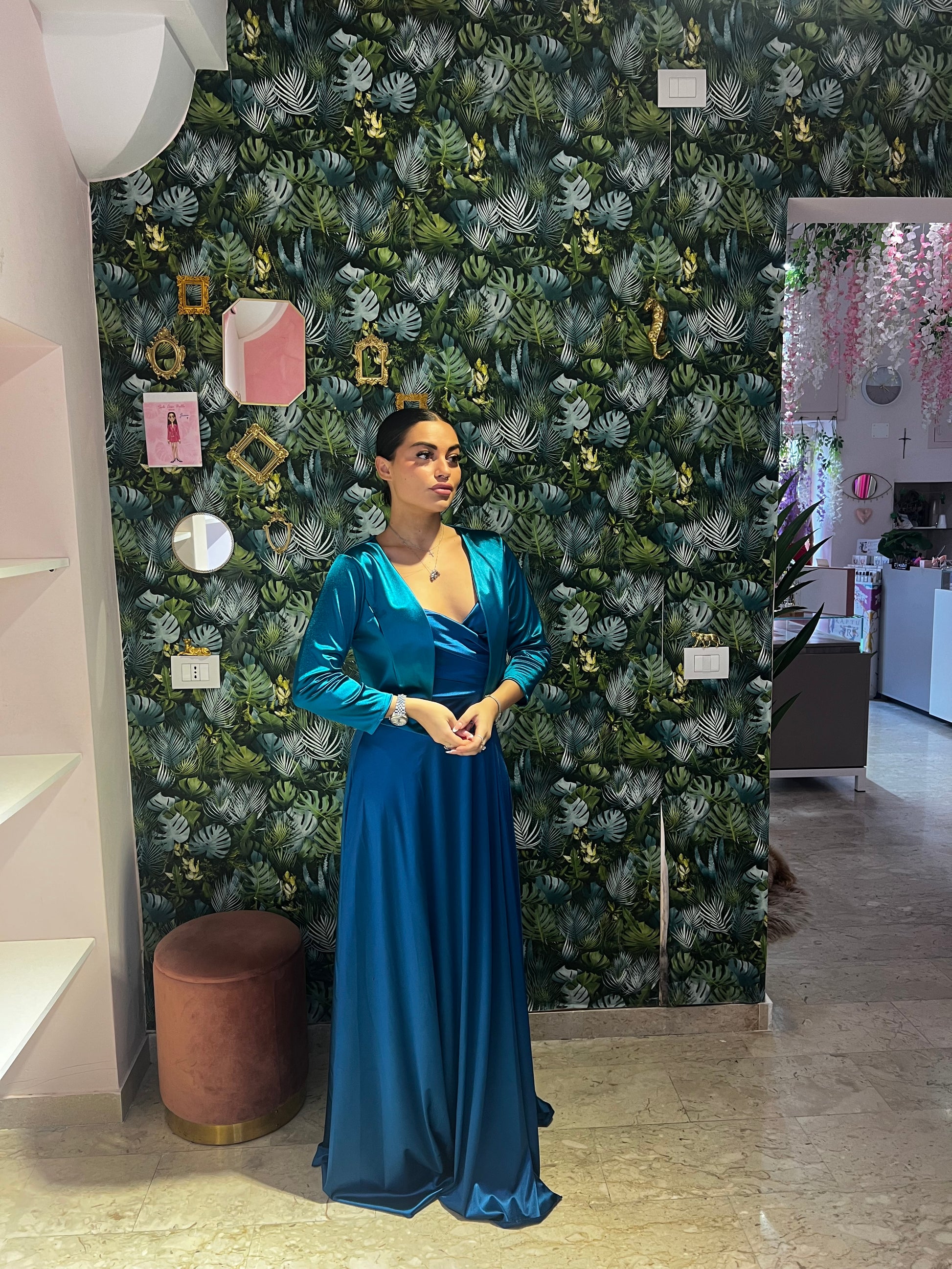 Aggiungi un tocco di eleganza al tuo outfit da cerimonia con il Coprispalla Cerimonia Effetto Raso. Questo giacchino di raso completa perfettamente il tuo look, garantendo un aspetto raffinato e sofisticato. Perfetto per tutti i tipi di eventi formali, questo coprispalla sarà un'aggiunta versatile al tuo guardaroba.