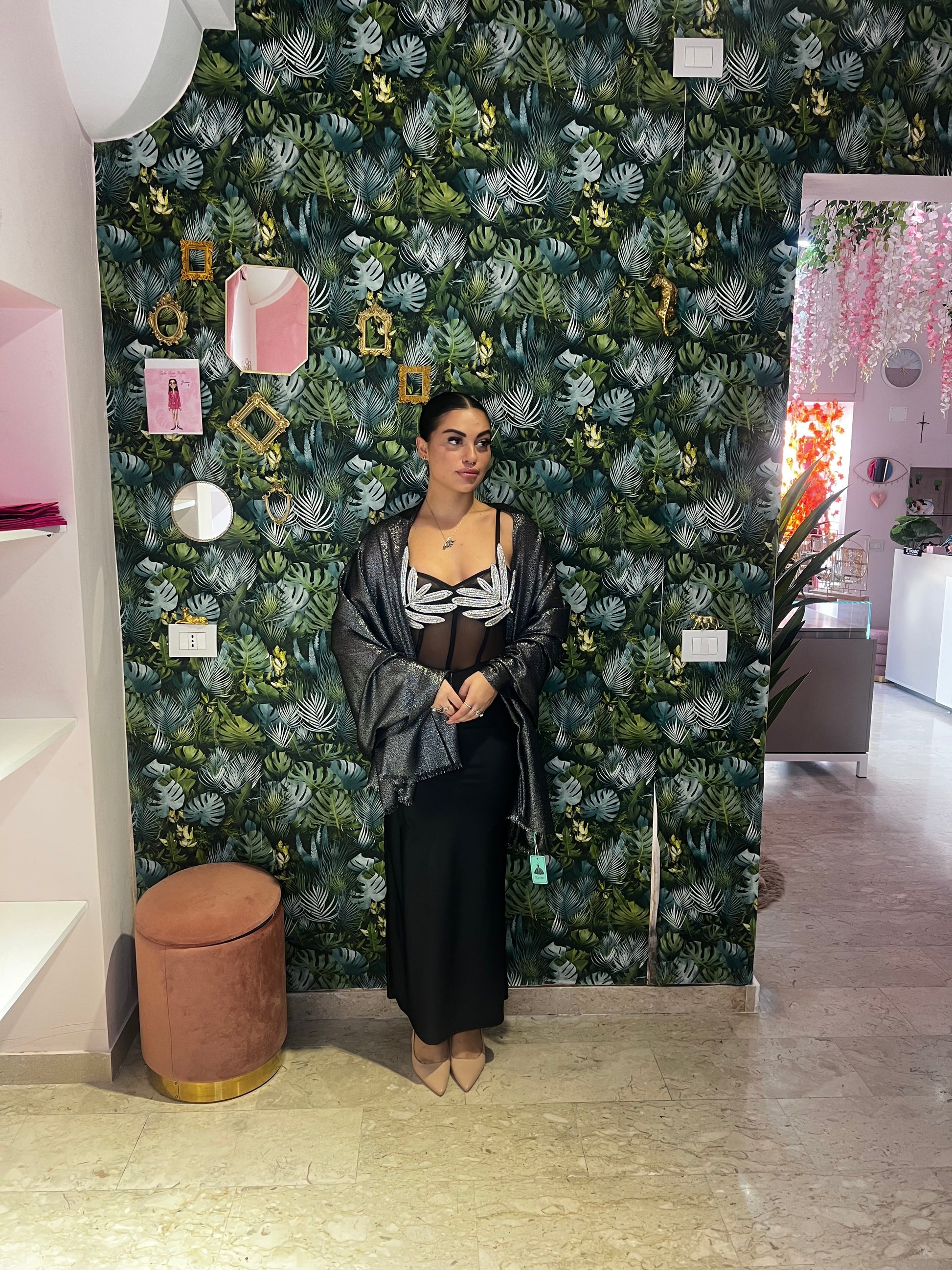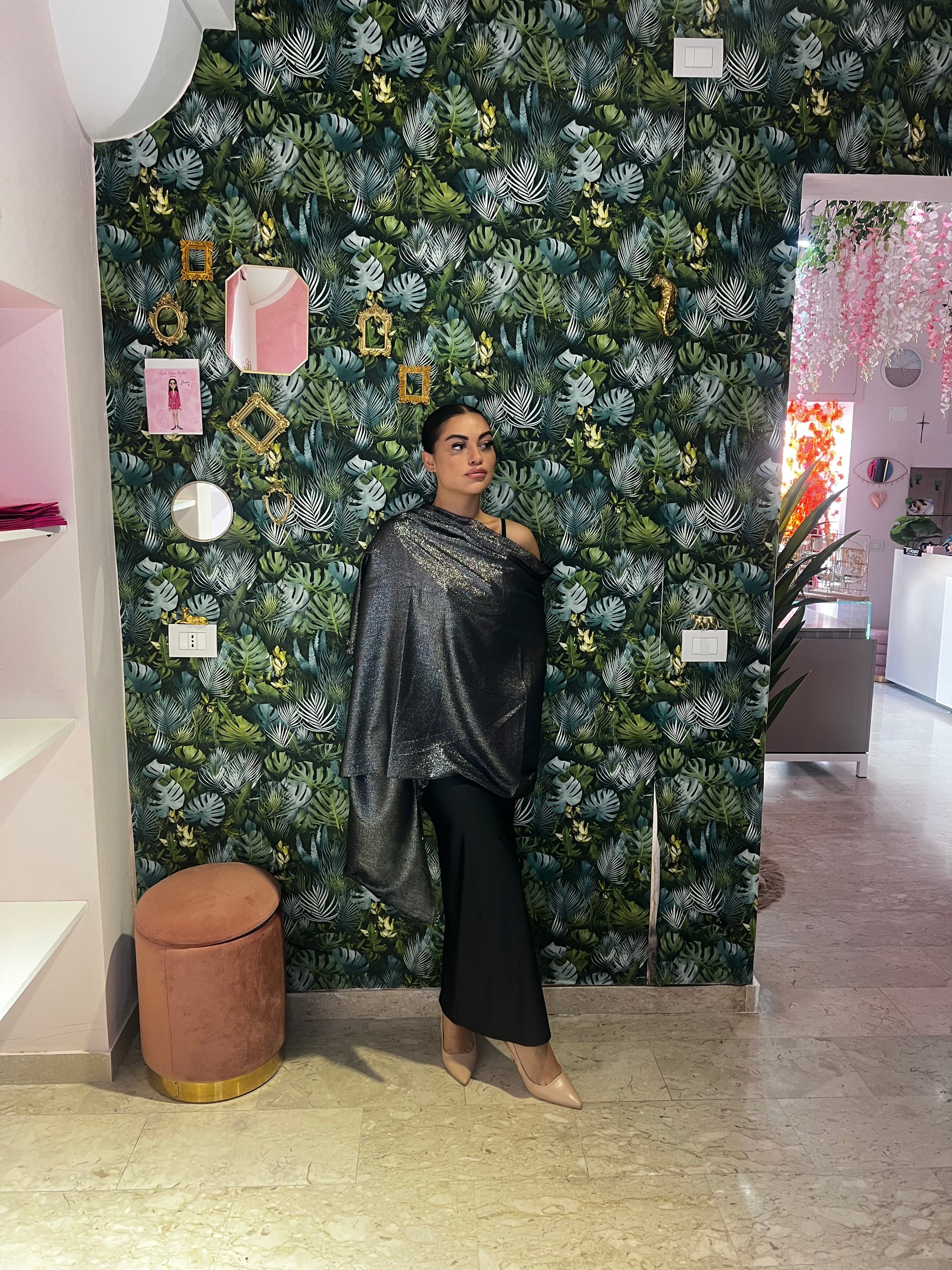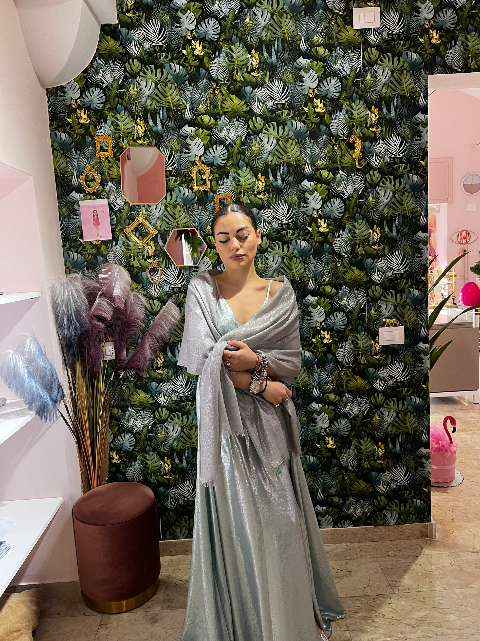 Questa Stola Giselle è perfetta per completare ogni outfit con un tocco di eleganza e lucentezza. La stola ha un ampio effetto lurex che dona un aspetto luminoso e sofisticato, rendendola ideale per occasioni speciali. Aggiungi uno stile senza tempo alla tua collezione con la Stola Giselle.