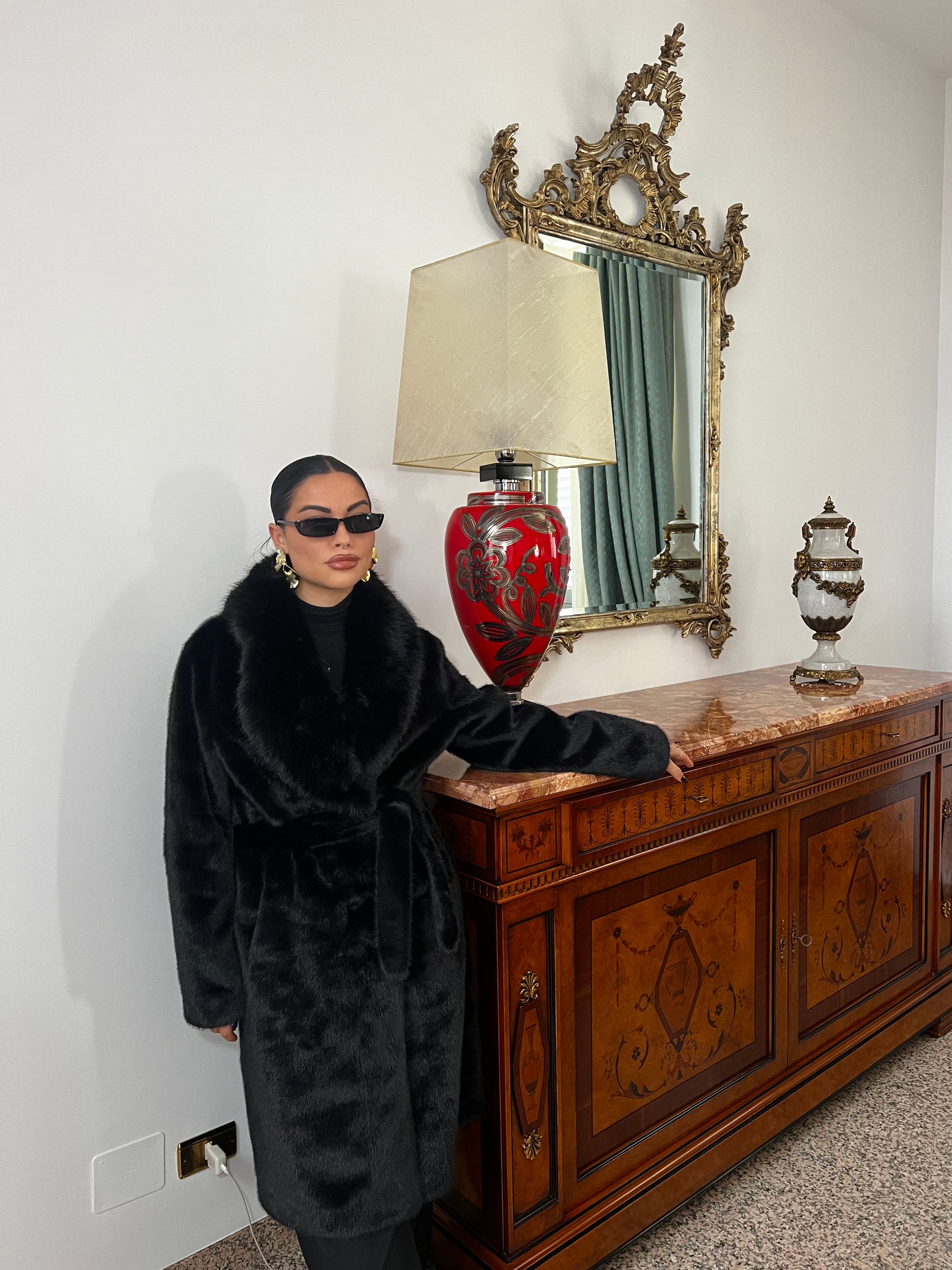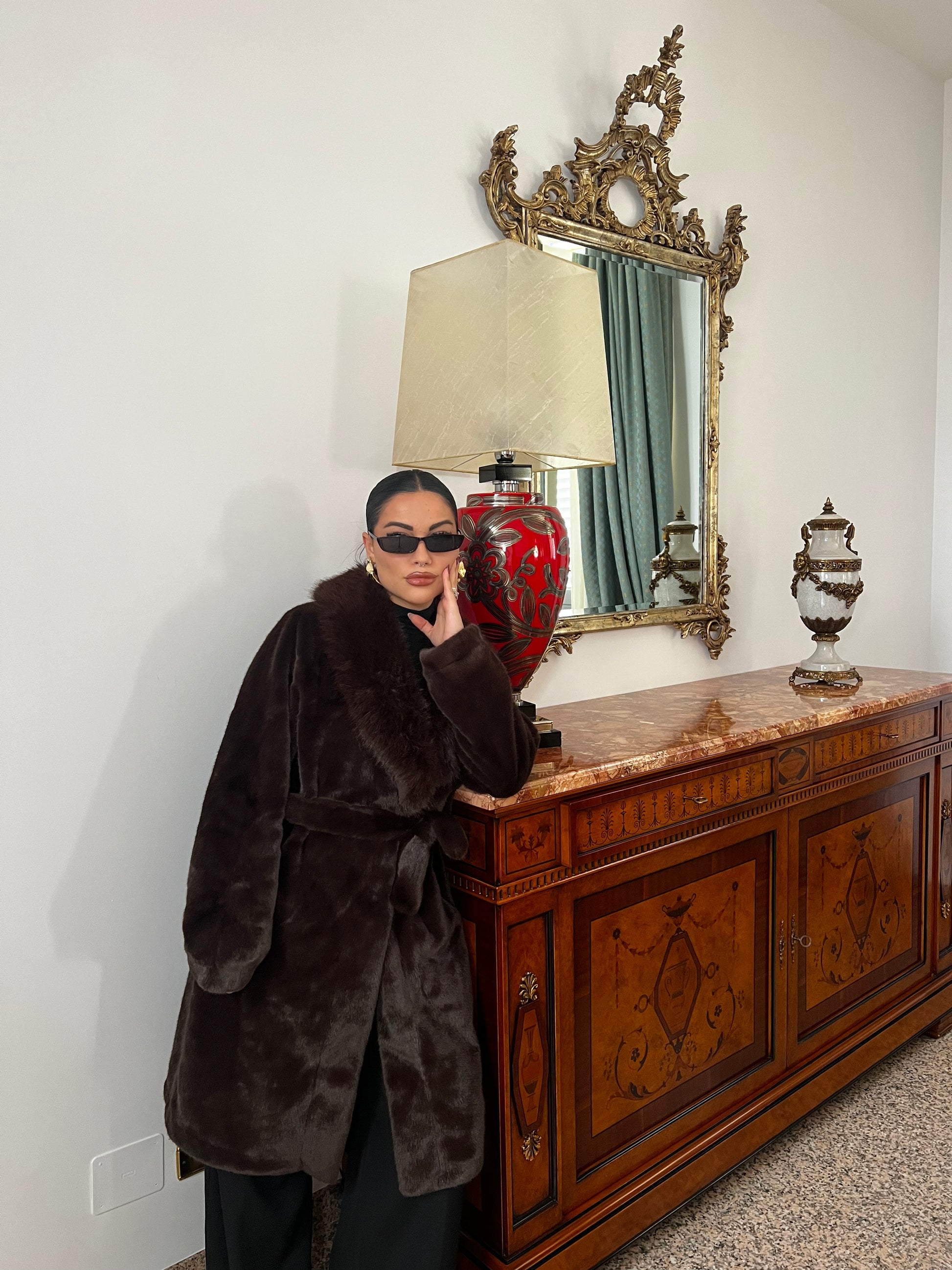 Effetto lussuoso garantito con la pelliccia eco morbida e lunga Hailey. La cintura regolabile aggiunge una nota di stile e praticità. Lasciati avvolgere dal calore e dalla morbidezza di questa pelliccia, senza alcun impatto sull'ambiente.