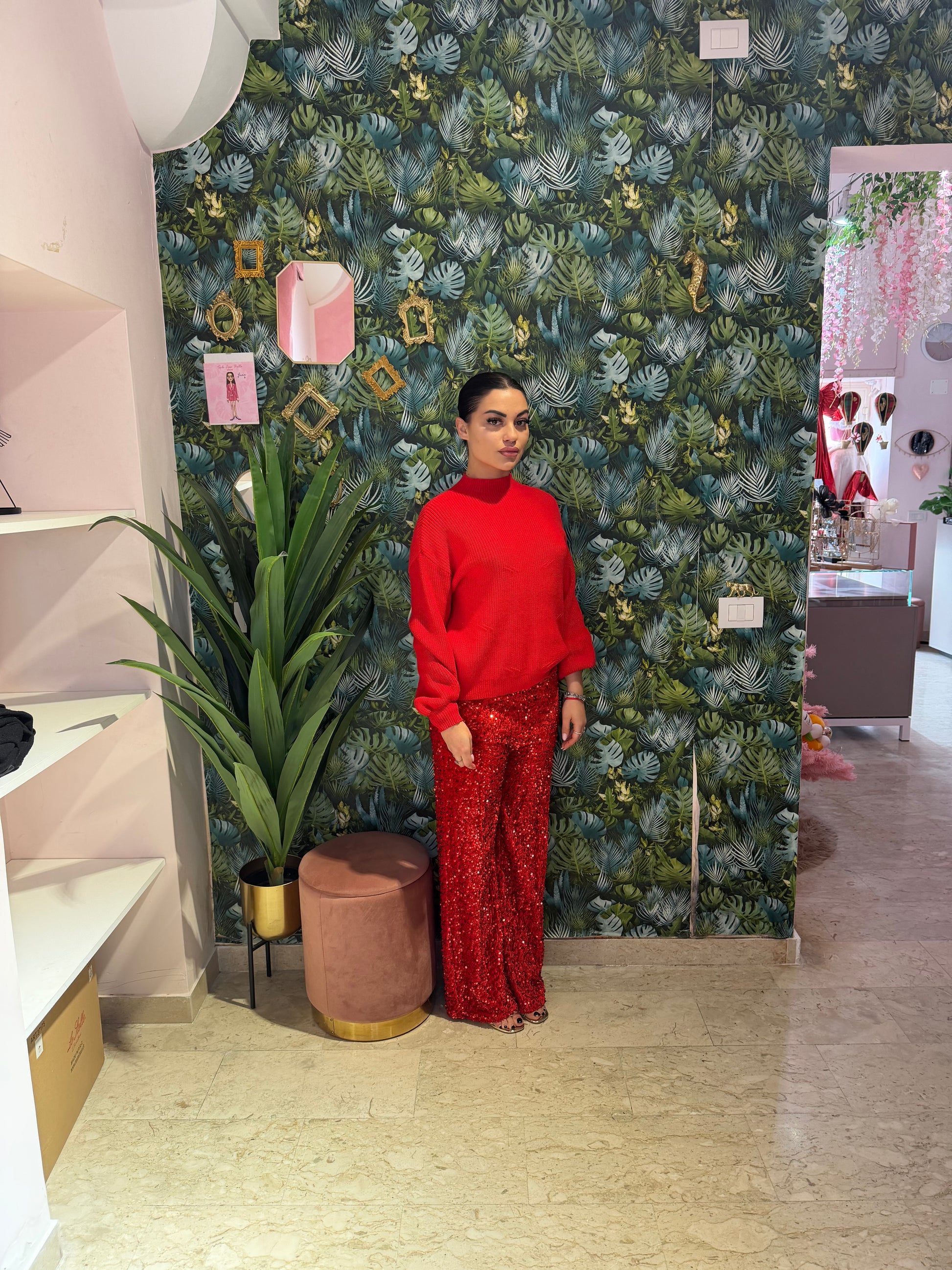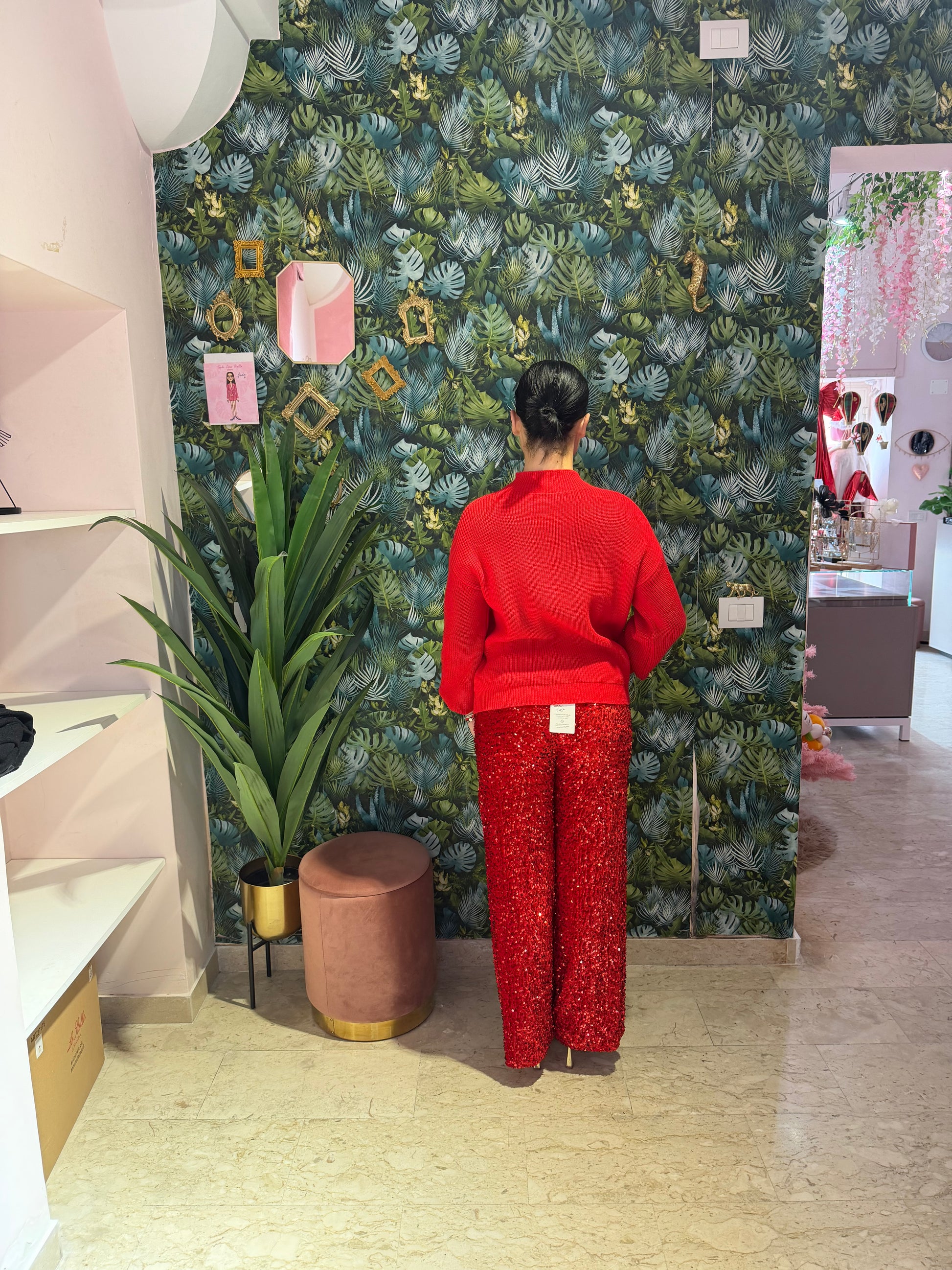 Perfetto per un look scintillante e seducente, il Pantalone Shine è realizzato in morbido tessuto elasticizzato con pailettes. Aggiungi un tocco di glamour al tuo outfit con questa elegante ma comoda scelta.