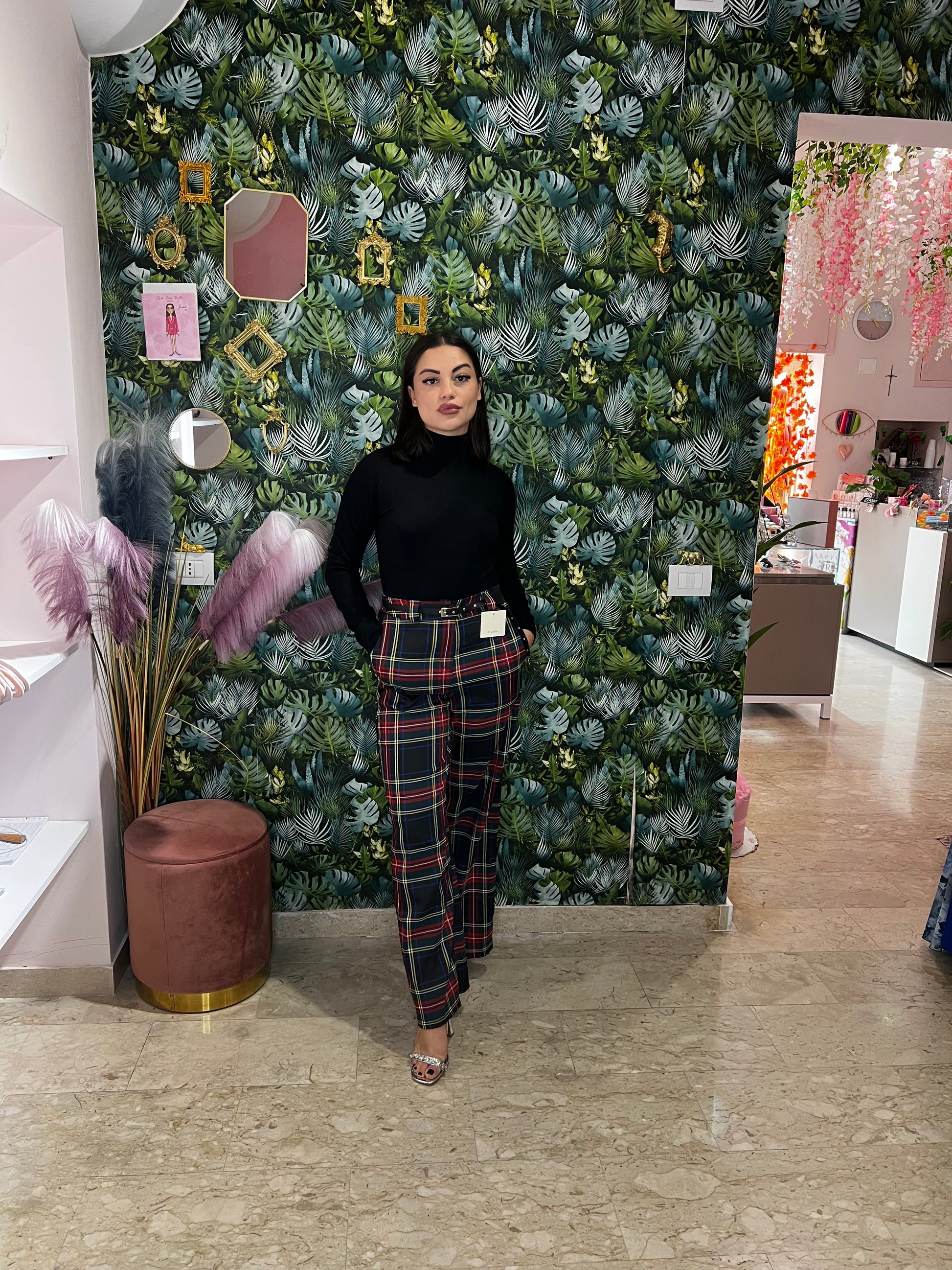 Il pantalone Tartan Chic ti farà sentire super glamour ma allo stesso tempo comoda durante le festività.