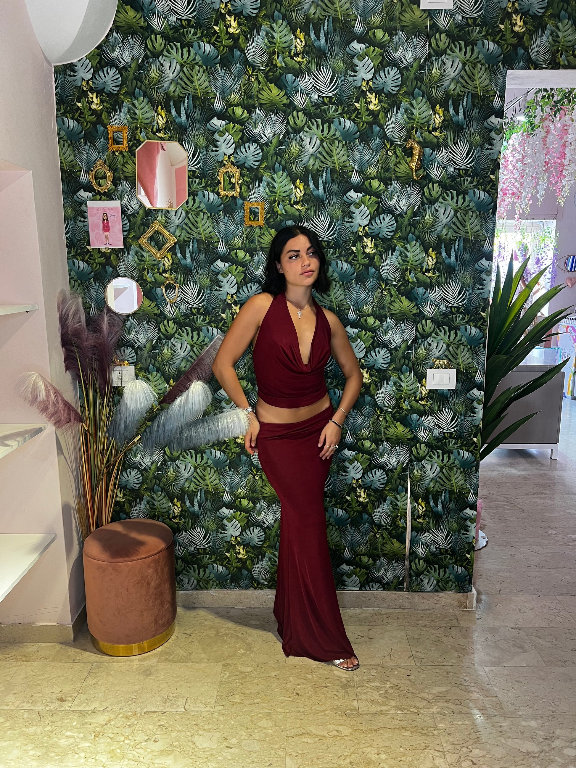 Il Set Brigitte è il completo perfetto per ogni cerimonia. Composto da un morbido top scollo all’americana e una comoda gonna longuette, ti farà sentire a tuo agio e chic allo stesso tempo. Ideale per chi desidera un look elegante e confortevole al tempo stesso.