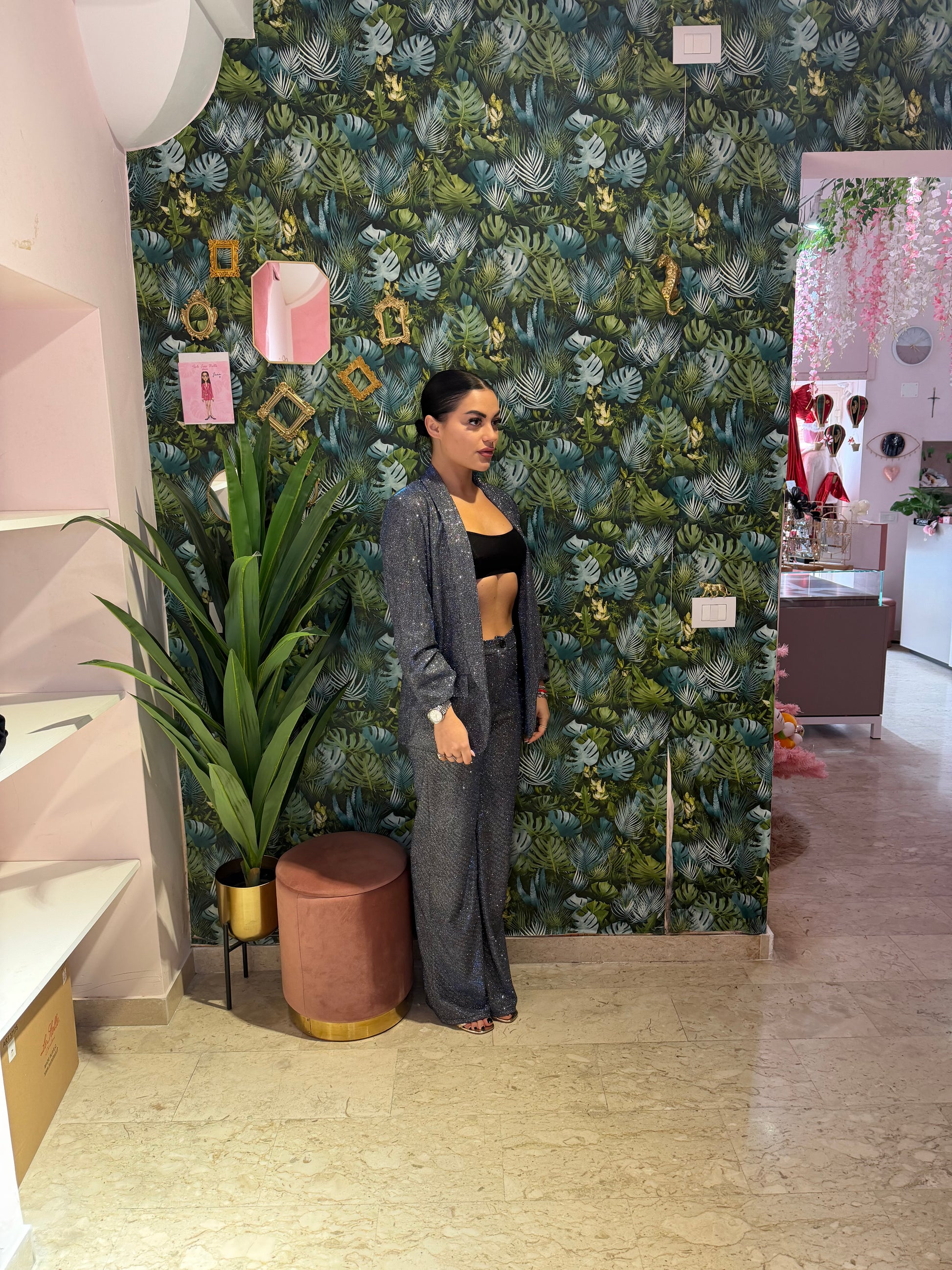 Crea un look mozzafiato con il nostro tailleur glam, ideale per feste e occasioni speciali. Il suo design brillante ti farà risplendere e il taglio impeccabile ti farà sentire elegante e sicura di te. Scopri la perfezione del nostro tailleur e lasciati conquistare dal suo stile scintillante.