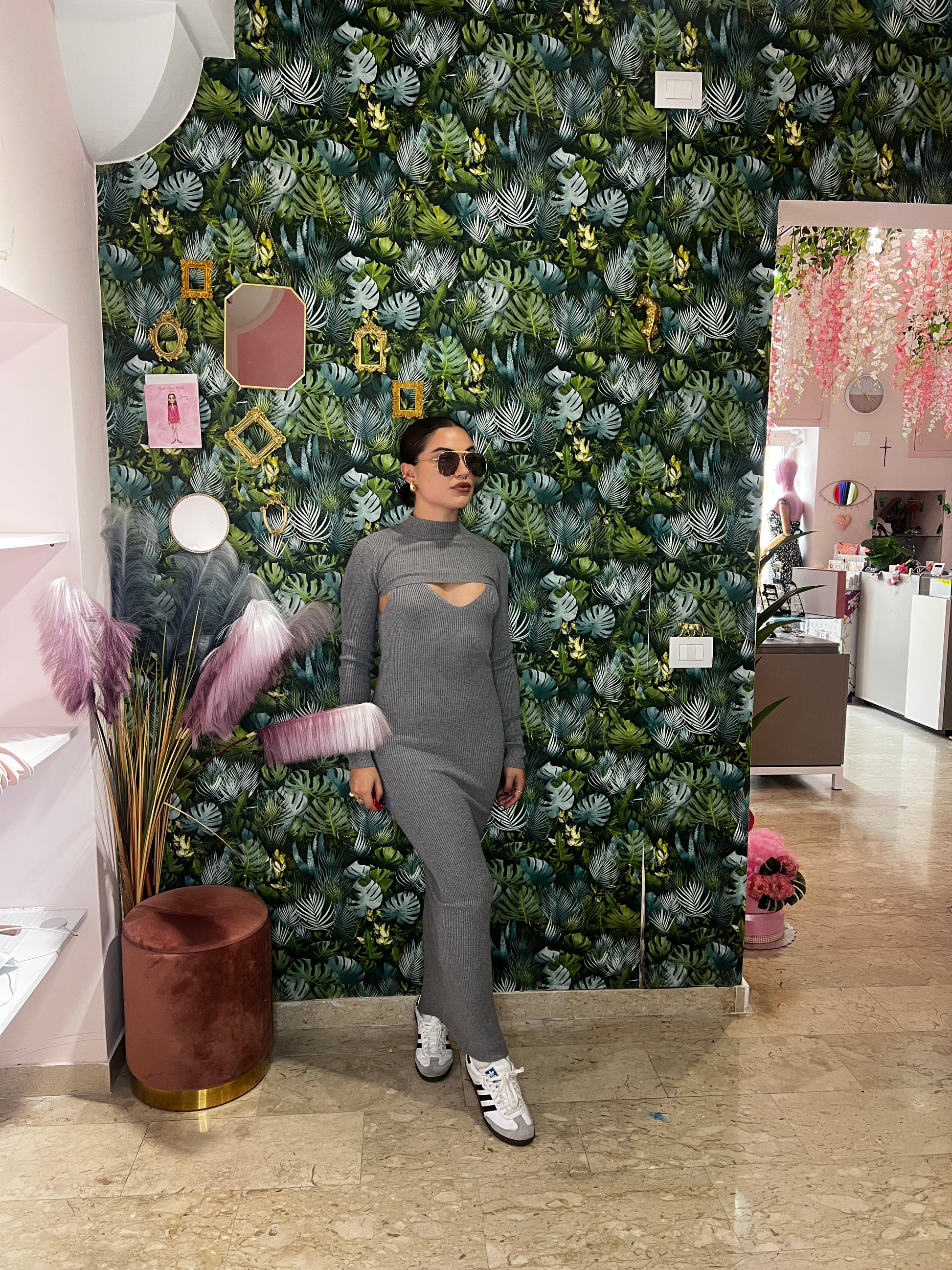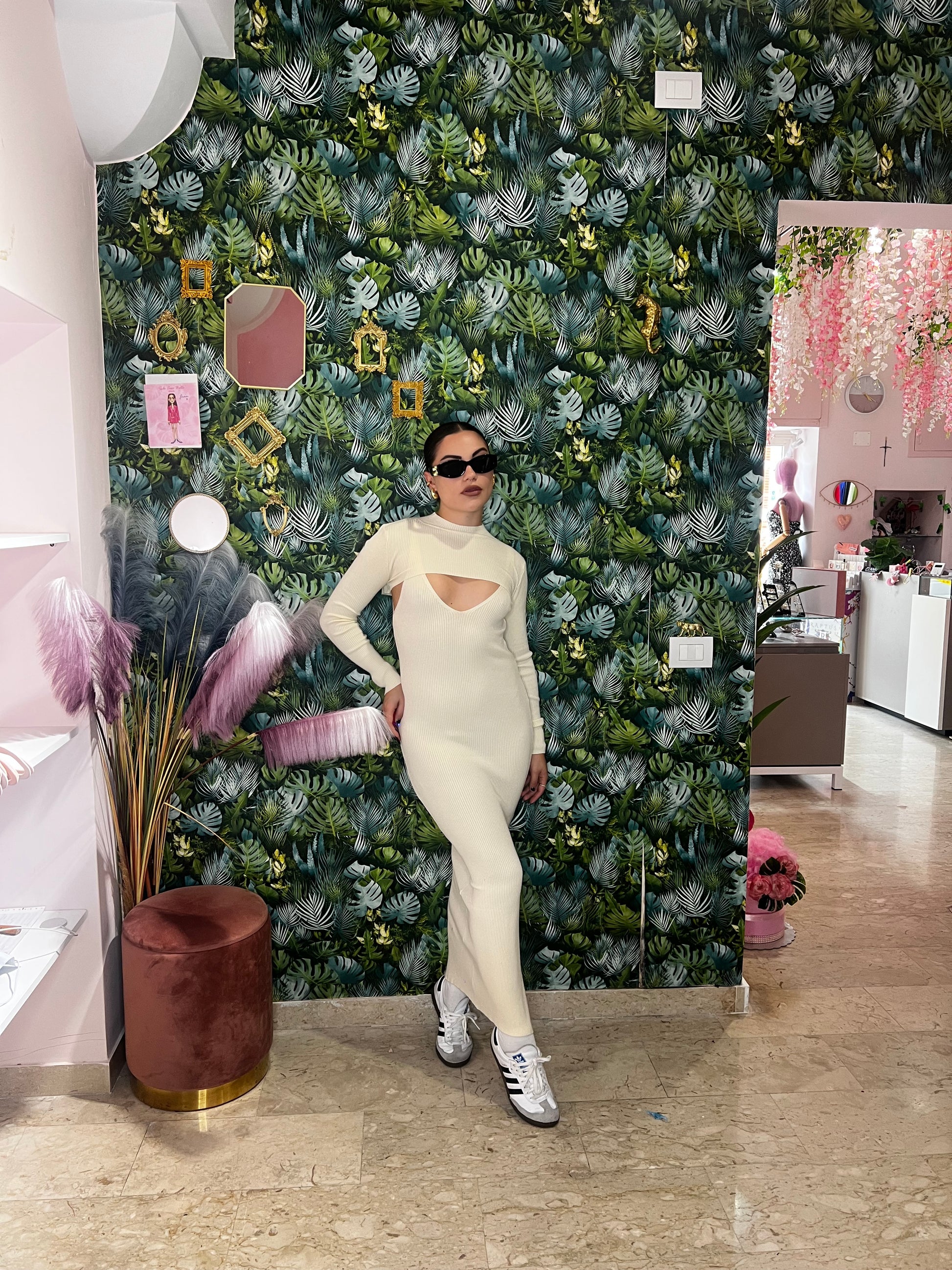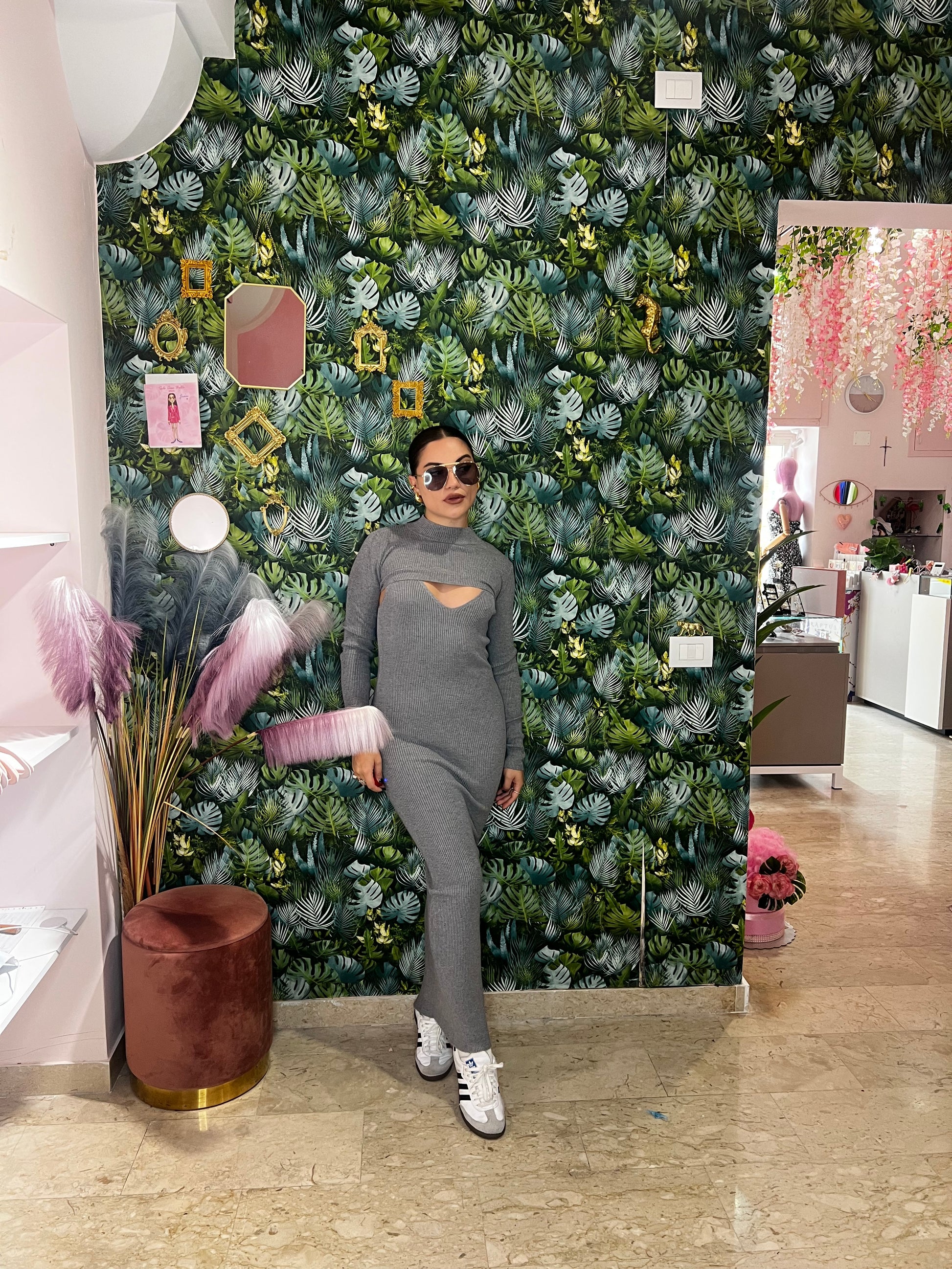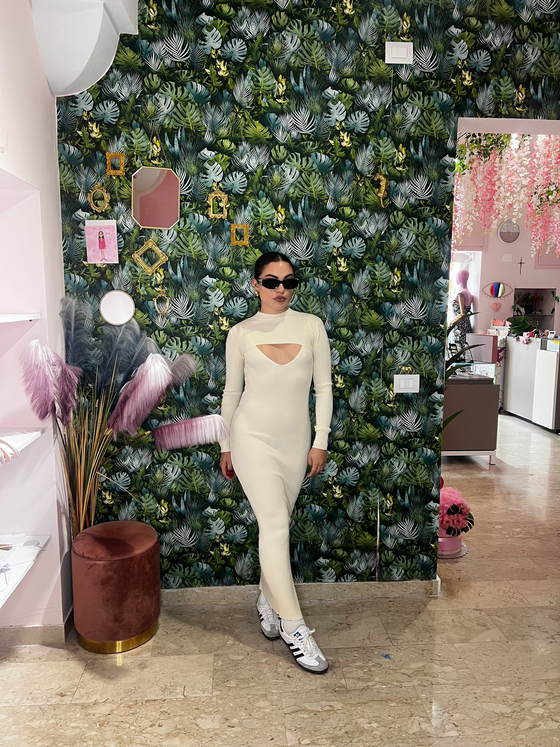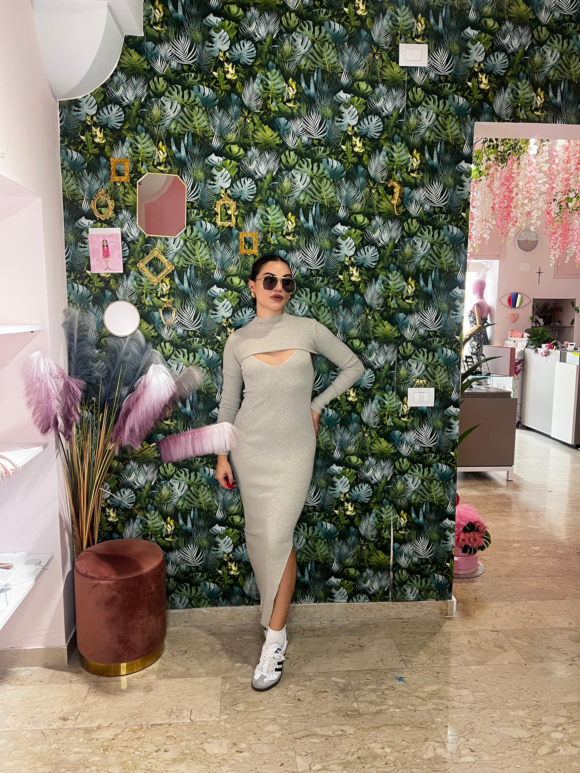 Questo elegante vestito Lussemburgo è composto da un abito a bretelline a costine e un scalda cuore. È perfetto per un look formale e sofisticato. Regala un tocco di classe e femminilità, mentre la sua vestibilità perfetta garantirà una comodità senza pari.